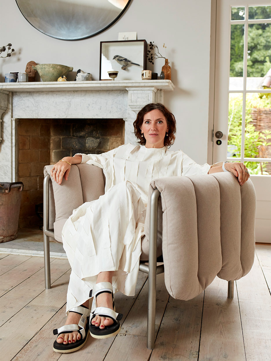 British designer Faye Toogood has done it again. This fall the multidisciplinary maven is releasing the Puffy lounge chair in collaboration with Swedish design brand Hem, a two-tone product marked by its contrasting materials and comforter-like aesthetic. The debut piece in Toogood’s Puffy furniture collection comes out October 7 (priced at $1,875), perfectly timed to the arrival of cooler weather—and our rising anxieties.
