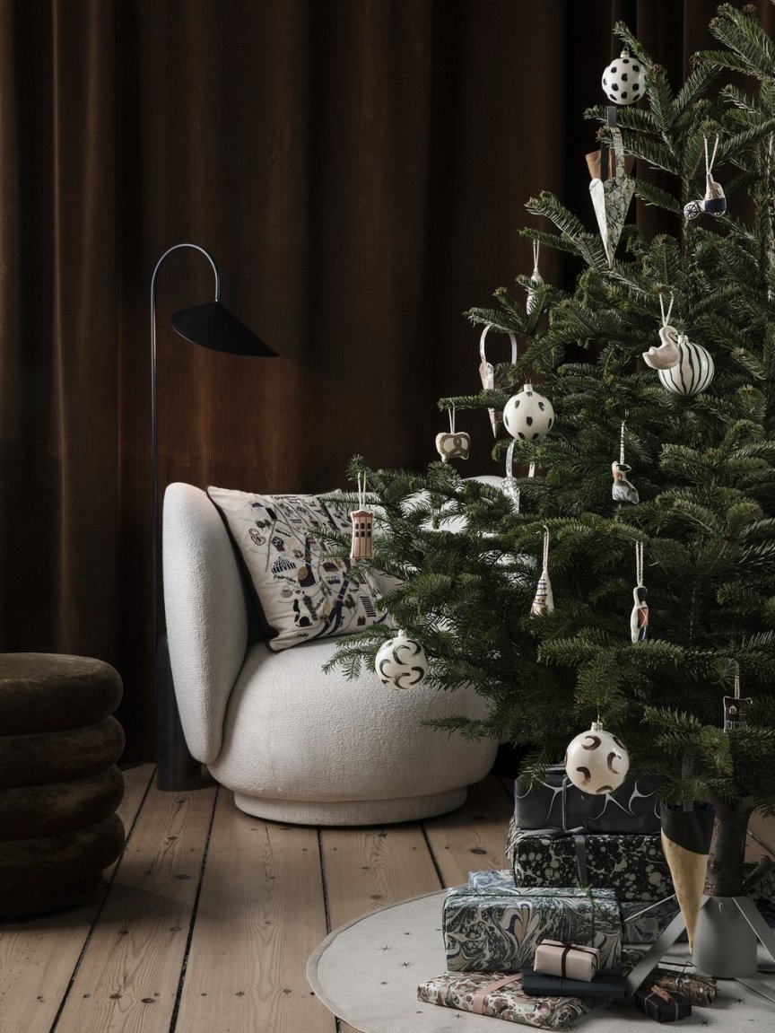 Danish brand Ferm Living recently released its holiday collection, and it looks like it’s on the same wavelength; the pieces have exactly the understated, moody vibe I’ve been looking for. Subdued burgundy and navy have taken over, with sculptural metal accents and marbled paper designs offering just the right amount of glam. Whether you’re in search of ornaments or tabletop essentials, check these out before going anywhere else: