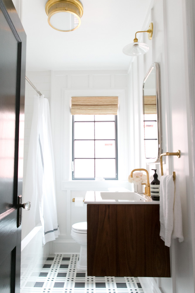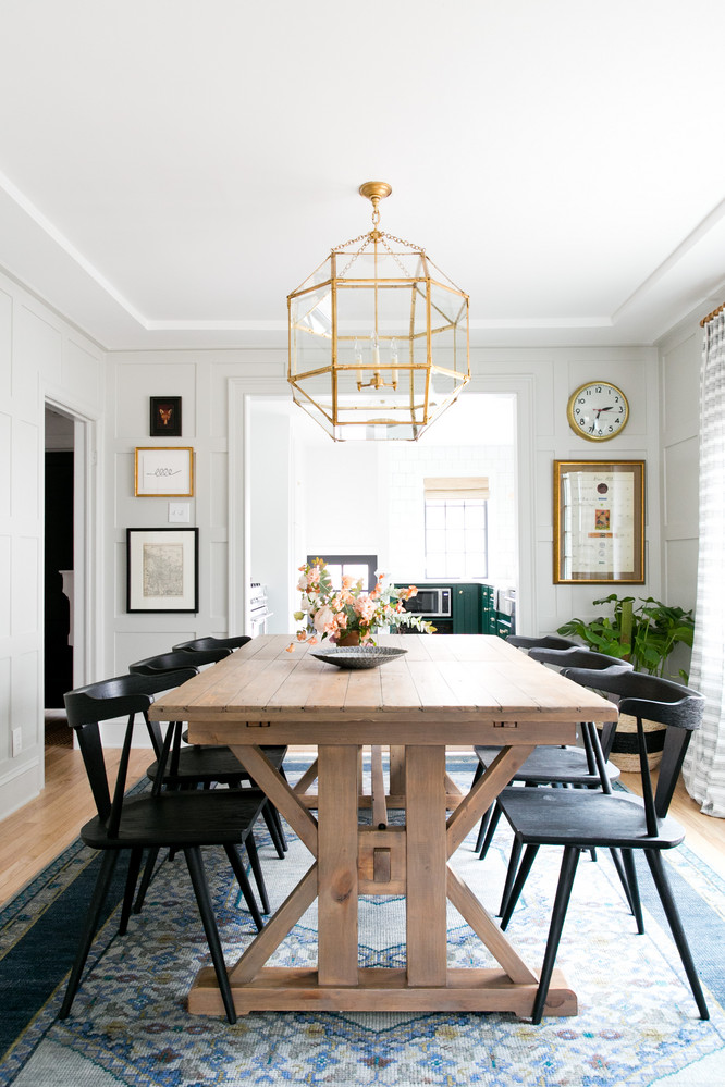 She made the most of limited square footage by honing in on a few select areas and going all out. “The home might be small, but the design choices are big!” says McGee. Take, for example, the graphic black and white tiles in one bathroom, or the dining room whose geometric light fixture mirrors the square paneling on the walls. What we have here is the chicest hodgepodge of styles we’ve ever seen—here’s how McGee got it done: