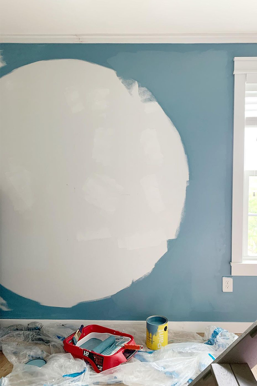 The journey started with Clare’s Blue Ivy paint color. Joy covered (almost) the entire wall in the hue, leaving a blank space that she filled in with a slightly darker shade called Deep Dive. Instantly the two rich tones made the room feel more sophisticated and less toddler-like. “I like that the room is blue now,” says her 9-year-old, Blake. Seven-year-old Grayson agrees: “It’s really cool!” Read on for a deeper look at her DIY and two other fresh spins on the trending idea.