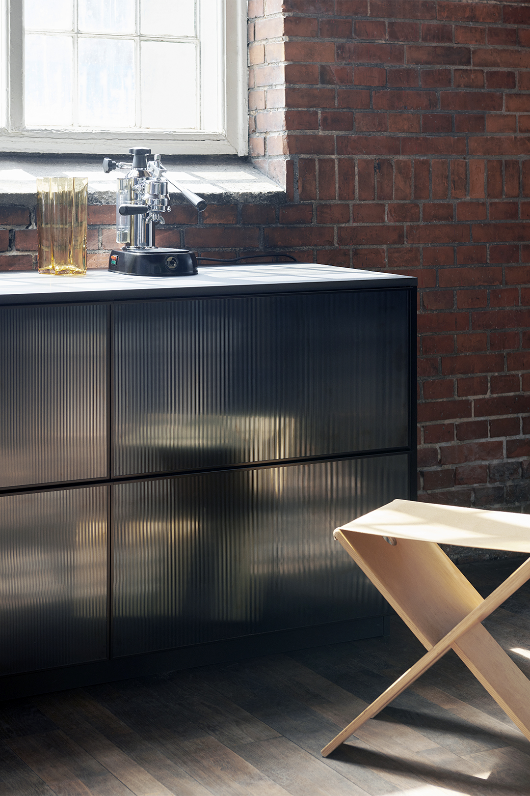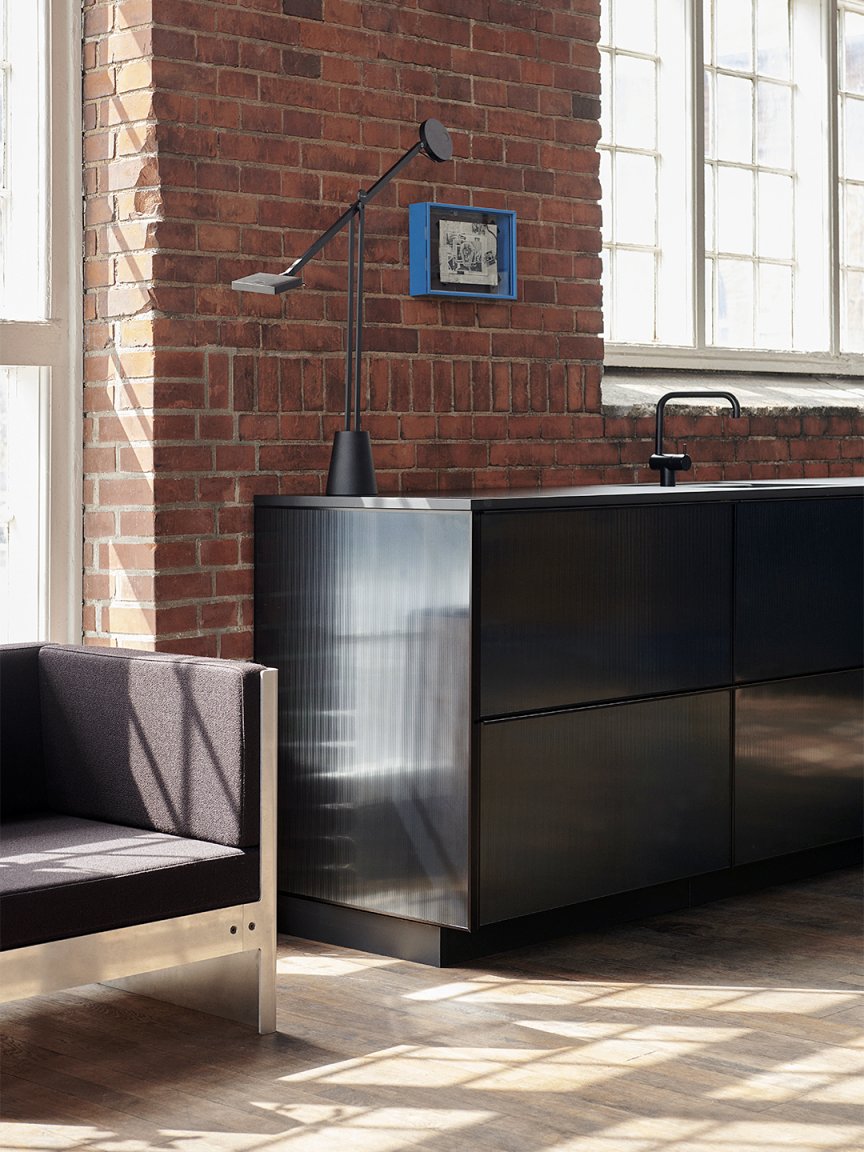 The Copenhagen-based design studio teamed up with Pritzker Prize–winning French architect Jean Nouvel to create a collection that basically marries the aesthetics of open storage with the peace of mind of closed doors. The system is made from sturdy steel (available in black and metal) imbued with high-gloss, steel sheets with vertical ridges—the wavy fronts bounce natural light around a room, no matter how big or small it is. You get the gist of what’s on the other side of the fronts, but you also don’t have to stress about whether or not your plates are perfectly stacked. If there is a mess going on, you can’t really see it.