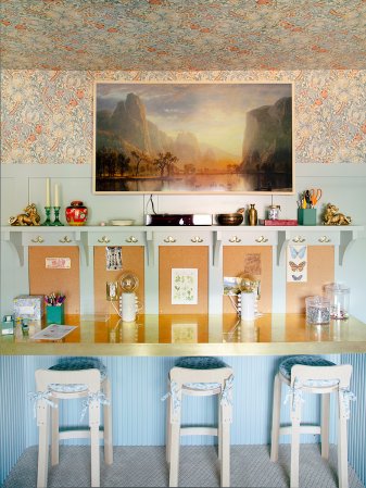 The pandemic miraculously only interfered once, when Becca went to order her dream tiles for the floors, which were inspired by the lobby of El Fenn in Marrakech. “I have a friend in Morocco whose uncle owns a zellige company, and I had fully planned on using their tiles,” she explains. But they couldn’t export them due to the lockdown. She had to find a company in Europe instead, one that could ship the warm white and unfinished terracotta glazed tiles to create the diamond pattern she had in mind. Luckily Mosaic Factory came to the rescue.