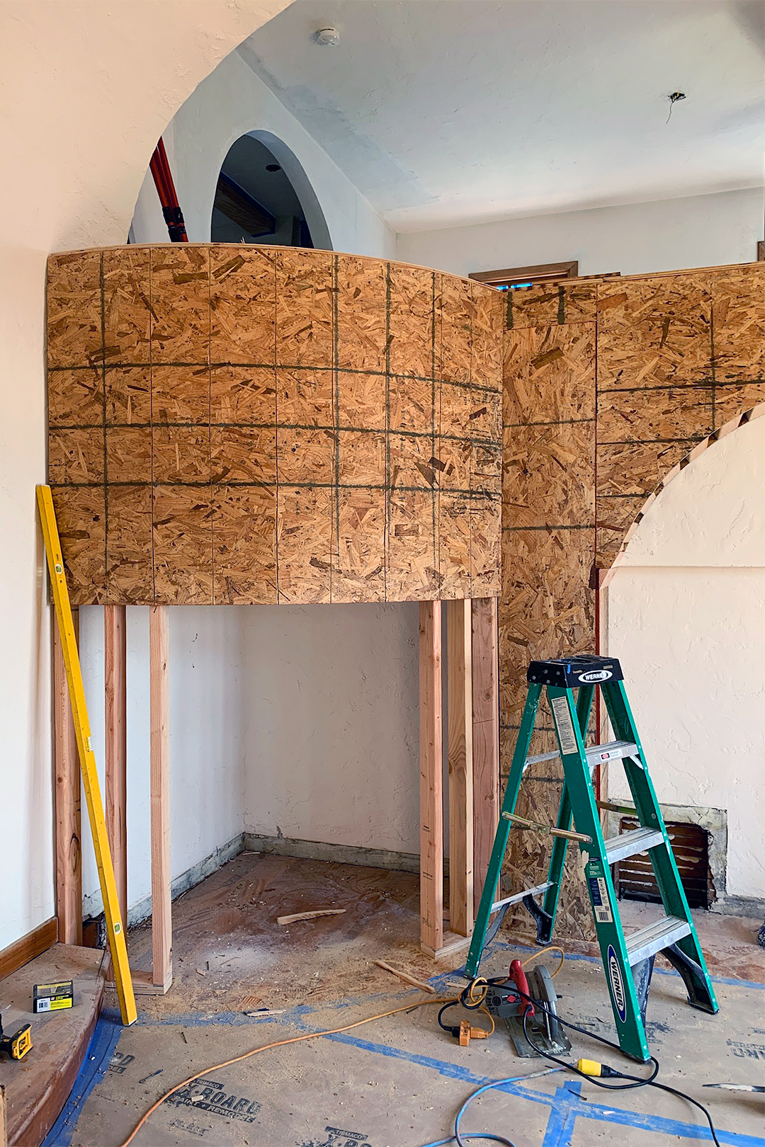 The pandemic hit only a few months after Brodie and Scott bought the place, halting the artist’s tour schedule but freeing up plenty of time to renovate. The space hadn’t been remodeled since the 1990s (it was done by architect David Stark Wilson), and while they loved a lot of the features, like the spiral stucco staircase, some of the other parts (for example, the orangey mahogany treads) felt stuck in the past. Step one? Knock down the wall between the kitchen and dining room to expand the views of the windows overlooking the bay into the rest of the space. “I let the curves and arches of the house guide my design, creating an arched opening in the wall,” says Brodie. “Now the house almost seems to be floating in the clouds.”