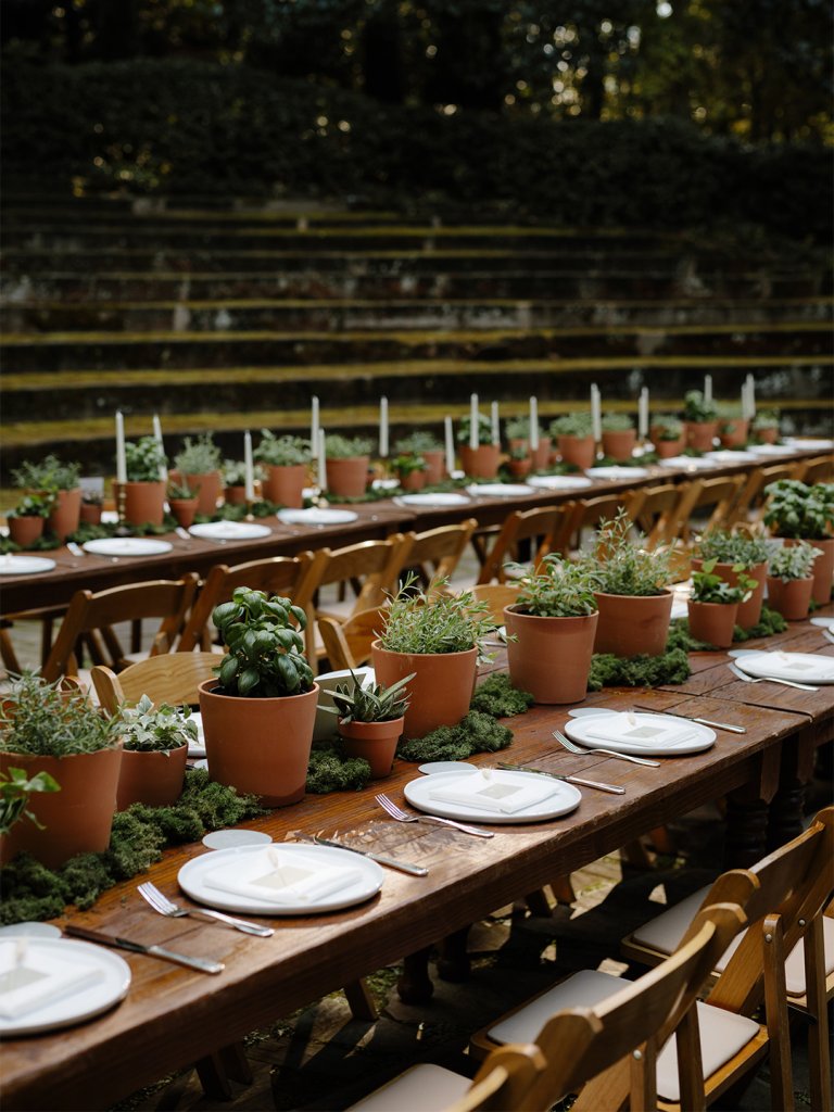 The key to making these stylish chandeliers work best for you is to find a look that complements the rest of your venue. For couples hosting a classic wedding, we love the look of pink roses, peonies, and white hydrangea tucked into lush greenery. If you’ve planned a more glamorous bash, heavy greenery draped around a faux-candle chandelier looks formal and ethereal. If you want to bring the outdoors in à la Kate Middleton, these natural décor elements will make your space feel organic but still special.