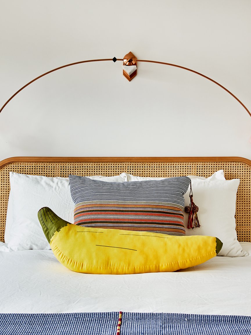 A pillow shaped like a massive fruit or vegetable is out of the ordinary, but let’s set something straight: It is still more grown-up than the pile of stuffed animals you fell asleep with as a child. We see it, instead, as a whimsical design accent—this bed setup by Caitlin Mociun is proof alone that sometimes the wackiest element in a room is the thing that takes it to the next level style-wise.