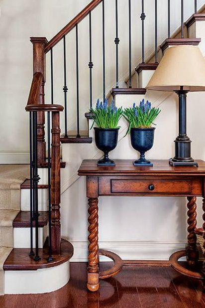 we’d rescue that antiqued marble fireplace, hidden underneath the wooden shelf, and style it with a handful of stacked prints!