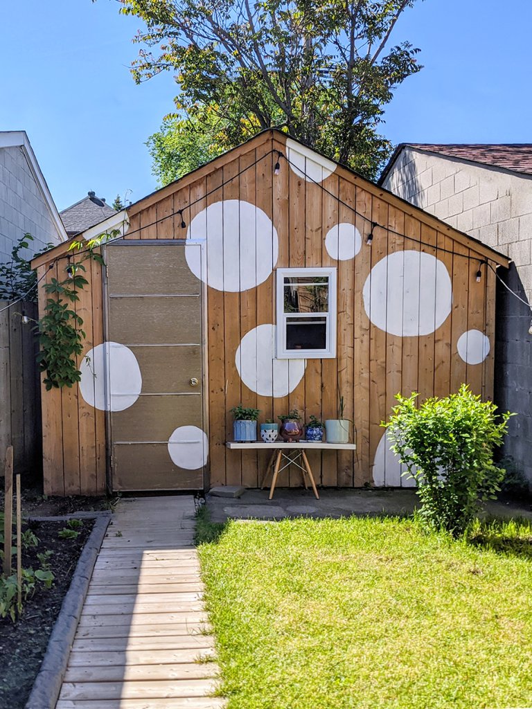 These days you can find the family gathered around the handmade Amish pine dining table (an $80 Facebook Marketplace find) or taking advantage of the bar setup in the corner during adult-only gatherings. Grimm, a former bartender, splurged on Italian glassware and ceramics (“We take our cocktail making seriously”). In the future she hopes to rent out the reimagined garage for photo shoots, workshops, and even yoga classes. “But right now it’s just been a game changer for us. Like our own little escape in a way,” she says.