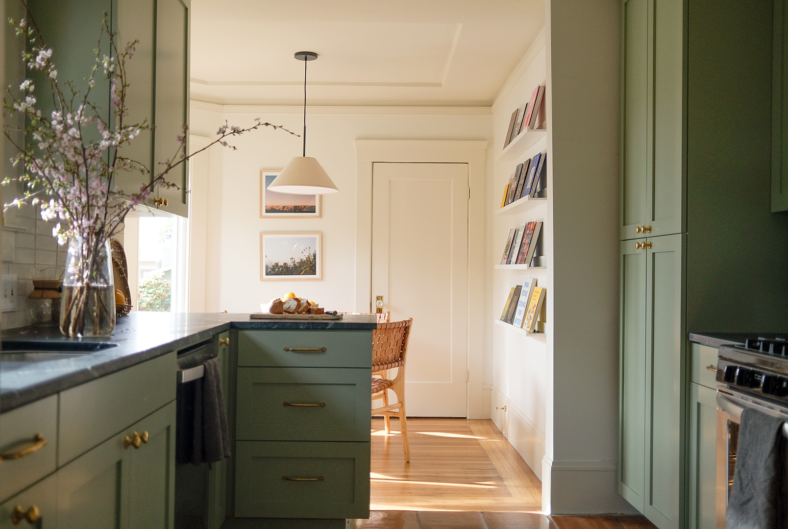 In every house Jessica Mikesell has lived in, she has had shelves dedicated to her cookbook collection. She isn’t a chef by trade, but it is her self-described love language and favorite way to decompress after work. So when she and her husband, Calvin, moved cross-country, from Brooklyn to San Francisco, their picture ledges were coming with. After a turbulent real-estate search, a 1920s Craftsman caught their eye, even though Jessica immediately knew the kitchen wasn’t up to her standards. “We had a dishwasher and a capable oven,” Calvin jokes. “What more did we need?” A pantry, for one.