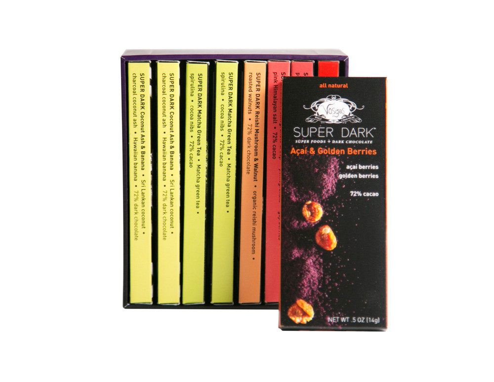 Chocolate and literary lovers will adore this decadent set. Each 72 percent cacao bar, shelved in a box like a collection of novels, is paired with a different super food, from acai berries to walnuts. So, basically, they’re health food.