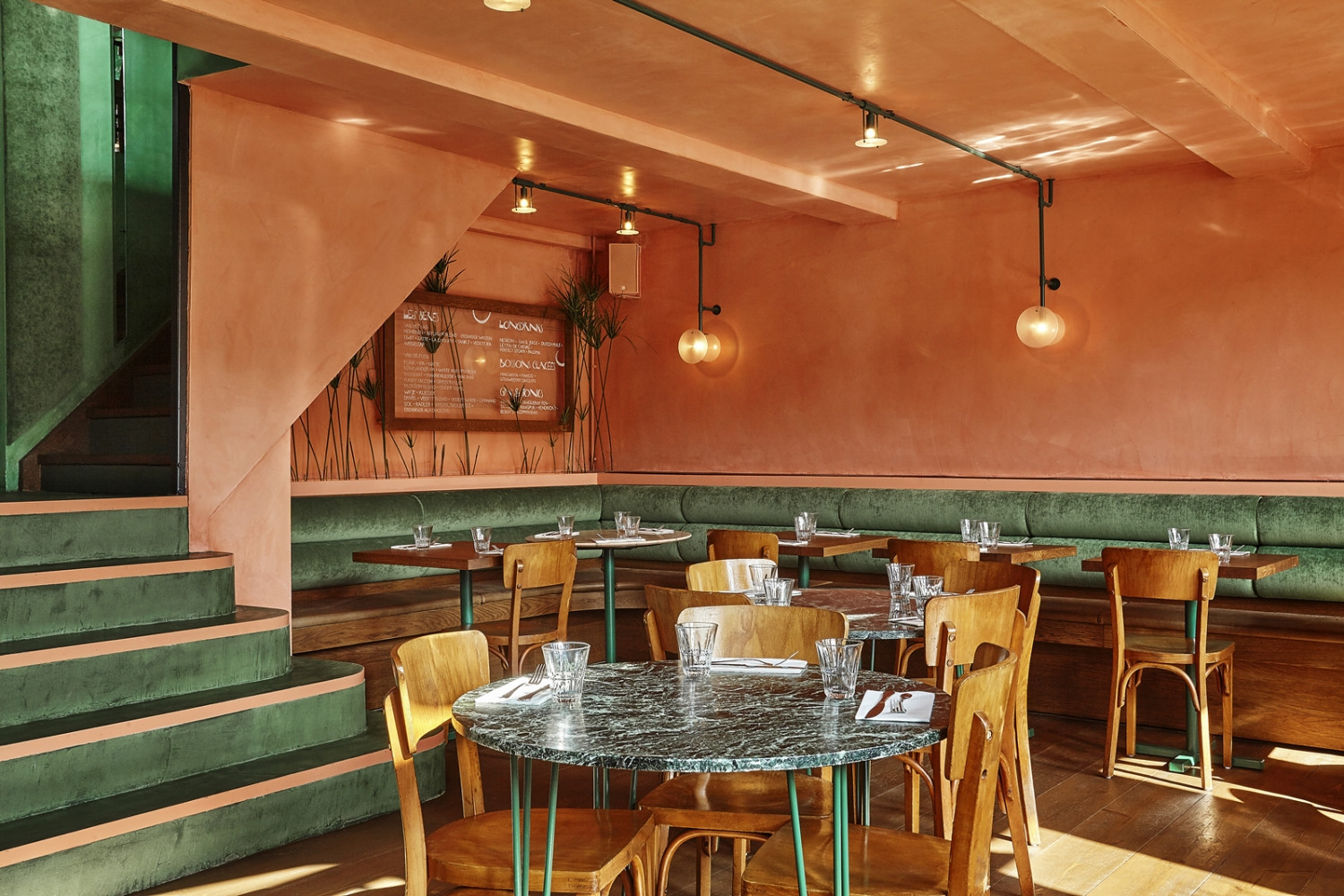 The botanical-inspired decor in this bar is reason enough to visit (though of course, it helps that the food is actually good too). Designed by Studio Modijefsky to give a fresh facelift to a former local café, this bar is coated in green save for a downstairs room with warm pink walls to complement the green velvet bench and green painted staircase.