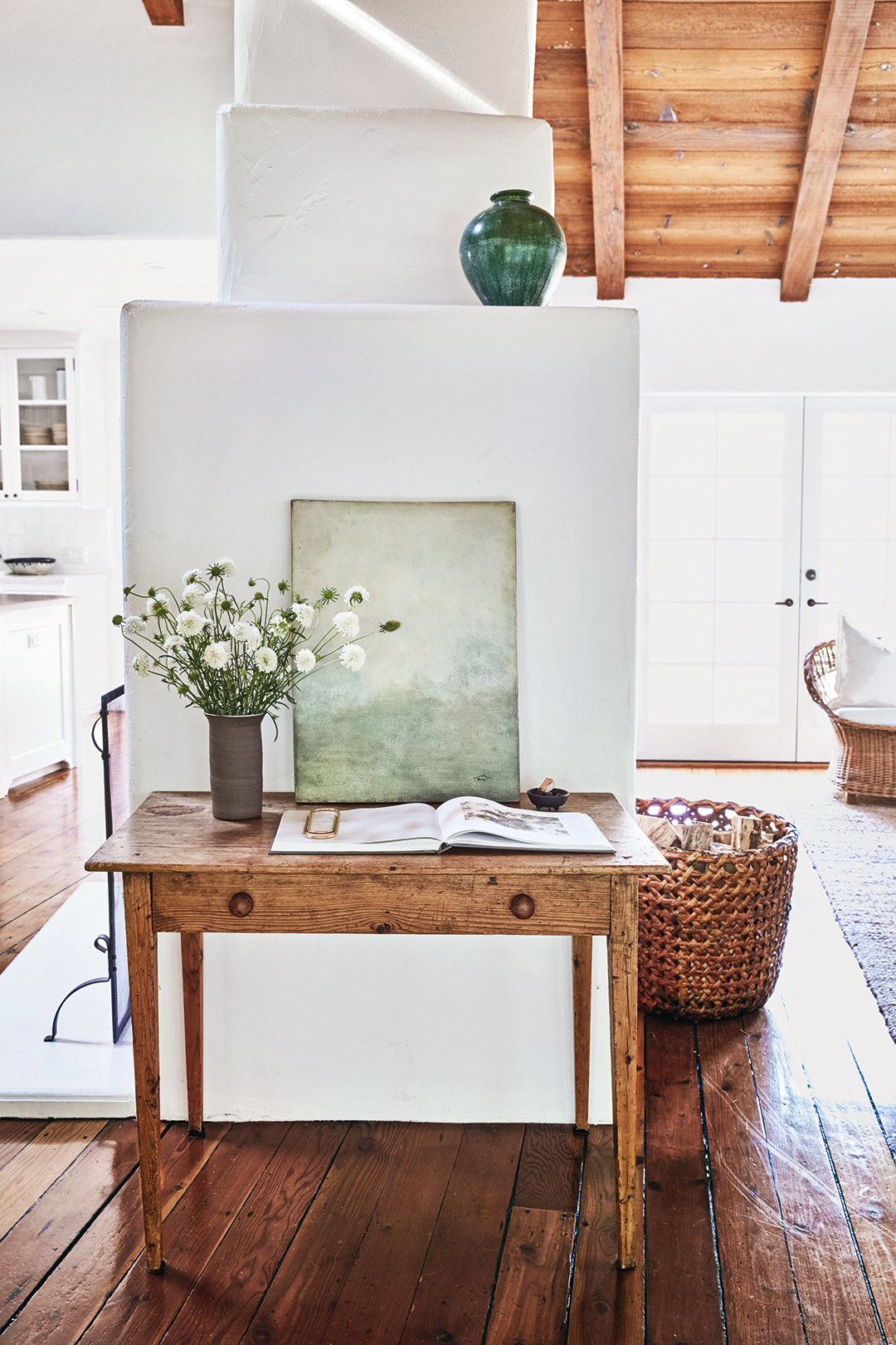 [In this image: Antique Wood Table, Meridith Baer; Stoneware Vases and Utensil Holders by Maggy Ames, Nickey Kehoe, $48; Vintage Basket, deKor LA.]