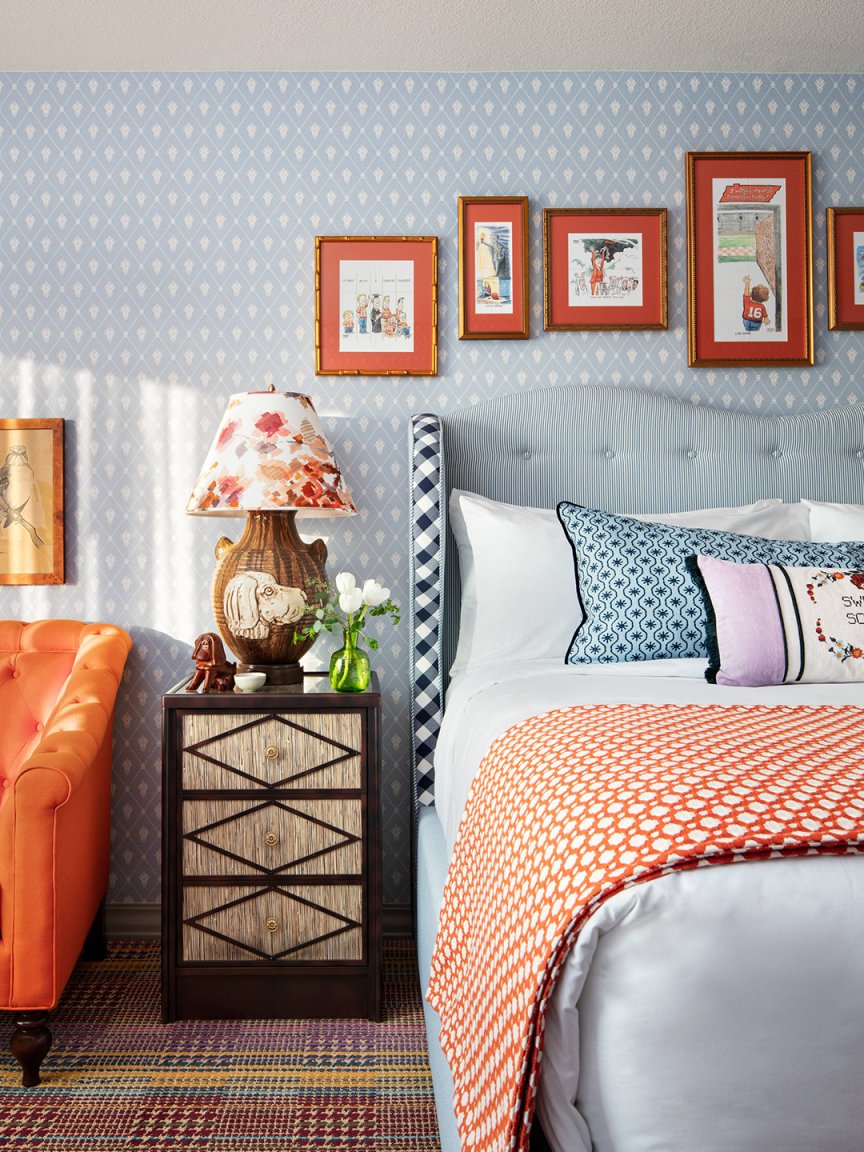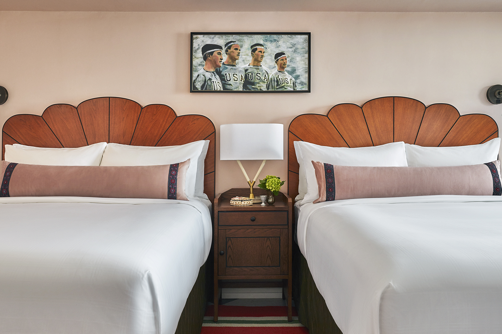 Upholstery isn’t the be-all and end-all for a statement headboard. Take a note from the Graduate’s Seattle location. A scalloped wood arc offers guests an Art Deco–inspired place to rest their heads at the end of a long day.