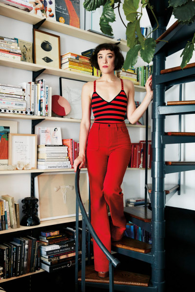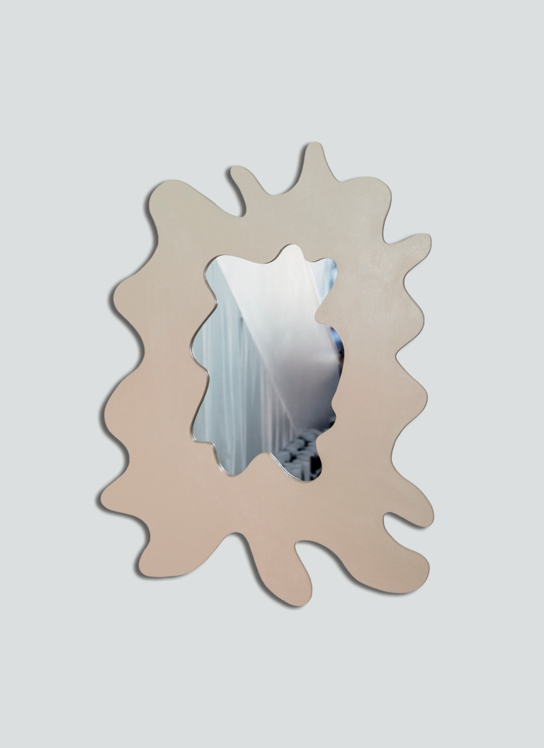 Luckily, Polskin has a private garage area outside that acts as a woodshop. It’s where she tackles her biggest commissions and intricate carvings. It’s also “scraptopia,” as she jokes (prototype parts, many of them edges for her amorphous mirrors, line the walls). “Some of the shapes continue to inspire me, so I’ll keep them around,” she says. Her bedroom overlooks the area, so “I’m really never not in my work,” she attests.