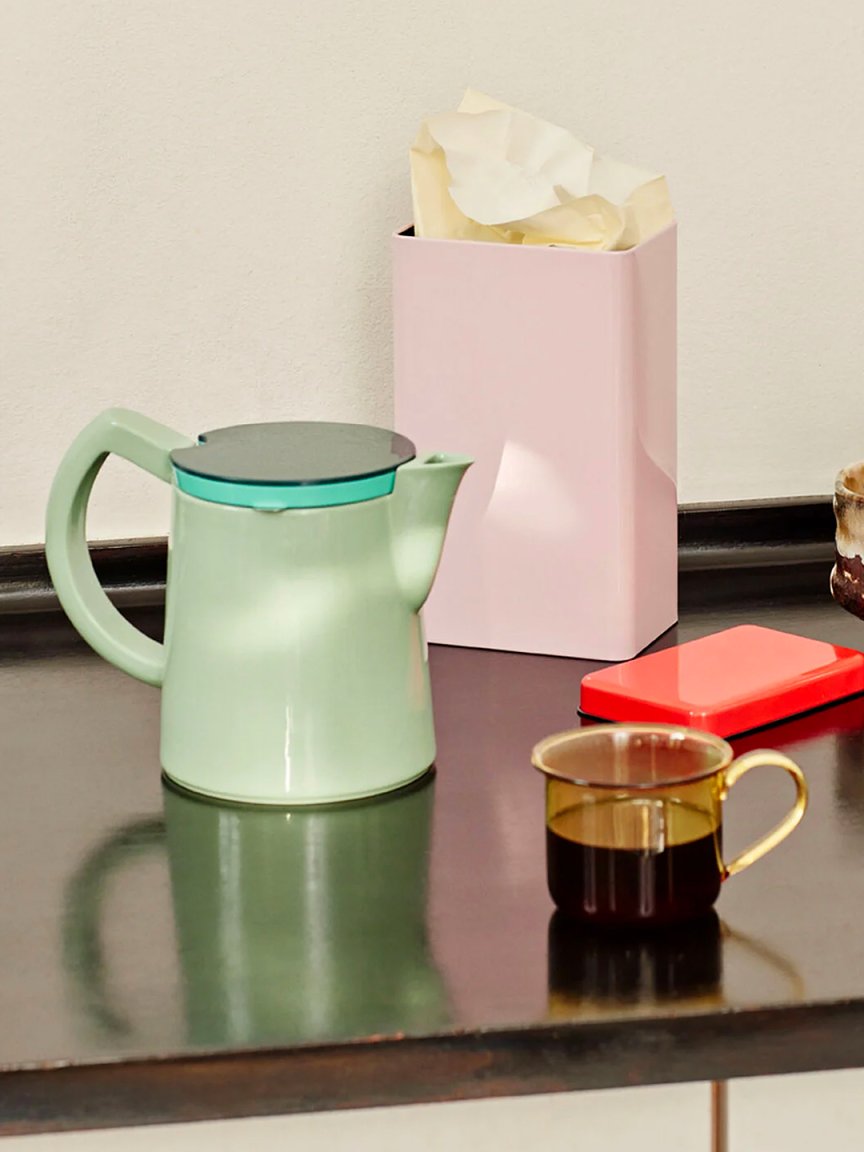 I debated Hay’s mint-hued Sowden coffeepot, designed by George Sowden, for a month or two before I finally decided to splurge on it in mid-March, having then settled into my first week of isolation. For the past five years, I’ve been otherwise devoted to my Chemex—a low-tech, high-reward system that always helped me make a perfect pour-over with ease. Years before that, I used a Keurig (which I shifted away from for sustainability reasons), and before then, my parents’ no-frills, single-cup Mr. Coffee machine.