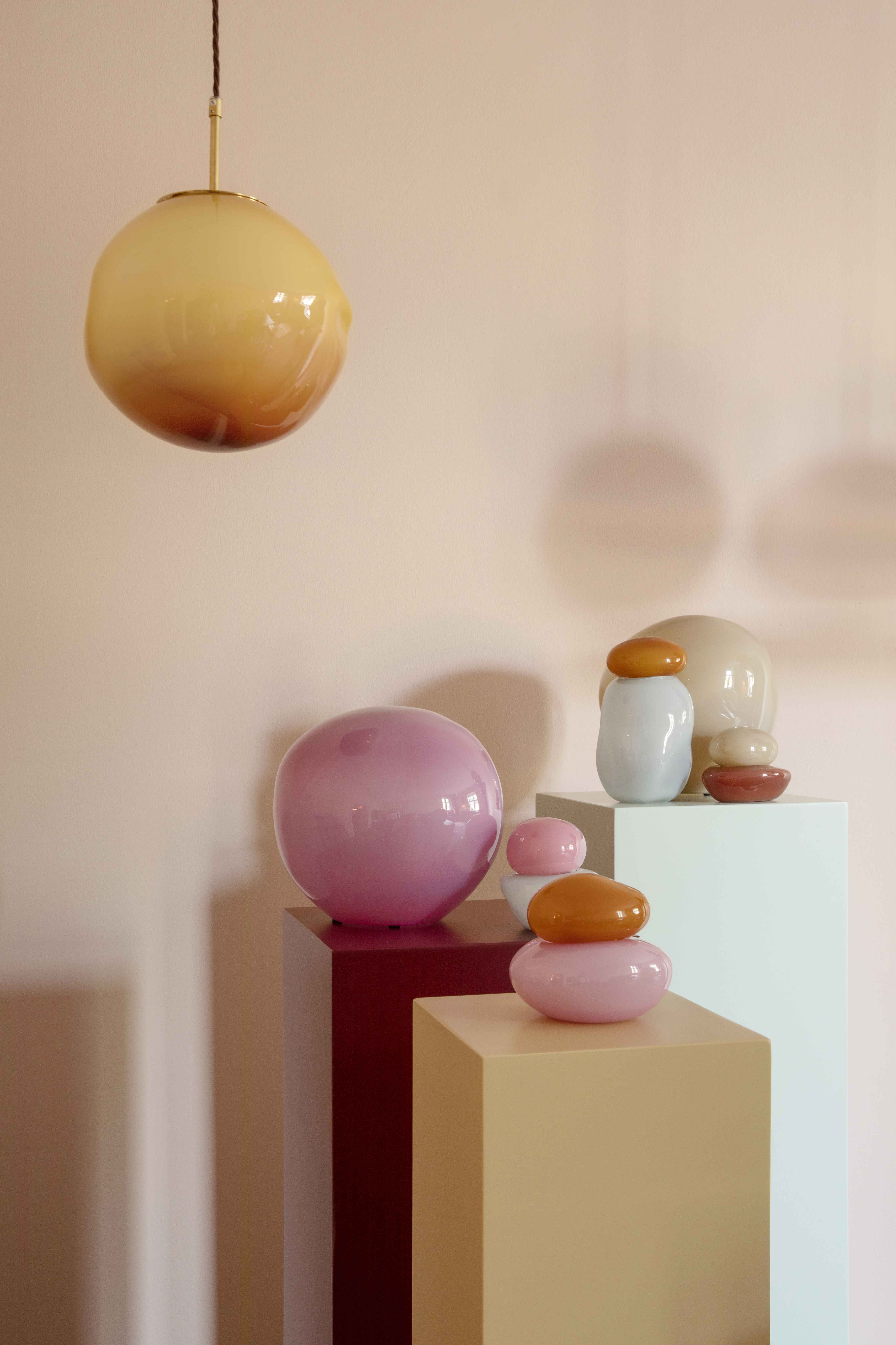 Color plays a powerful role in Mardahl’s more recent Candy Collection. True to its name, the rainbow-infused collection encompasses sweet shades of bubblegum pinks, honey-colored pendant lights, and art objects reminiscent of jelly beans and bonbons. Fragile and flavorful, the temptation is true: You really do want to take a bite.