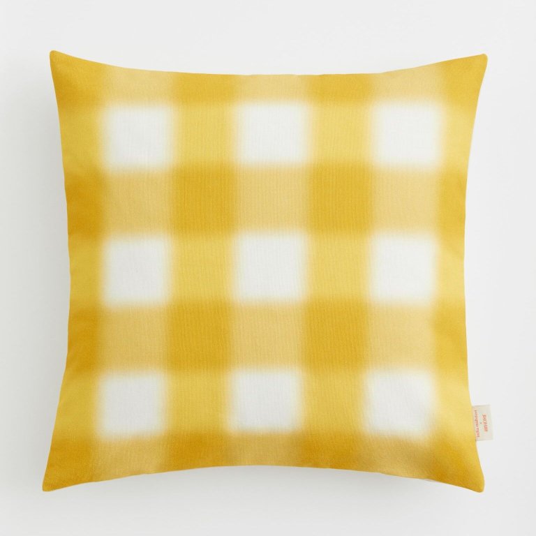 We’re still not over checked prints, but we’re digging this fresh take with its almost-ombré lines and citrusy shades, resulting in a pillow worthy of any sofa or bed refresh.