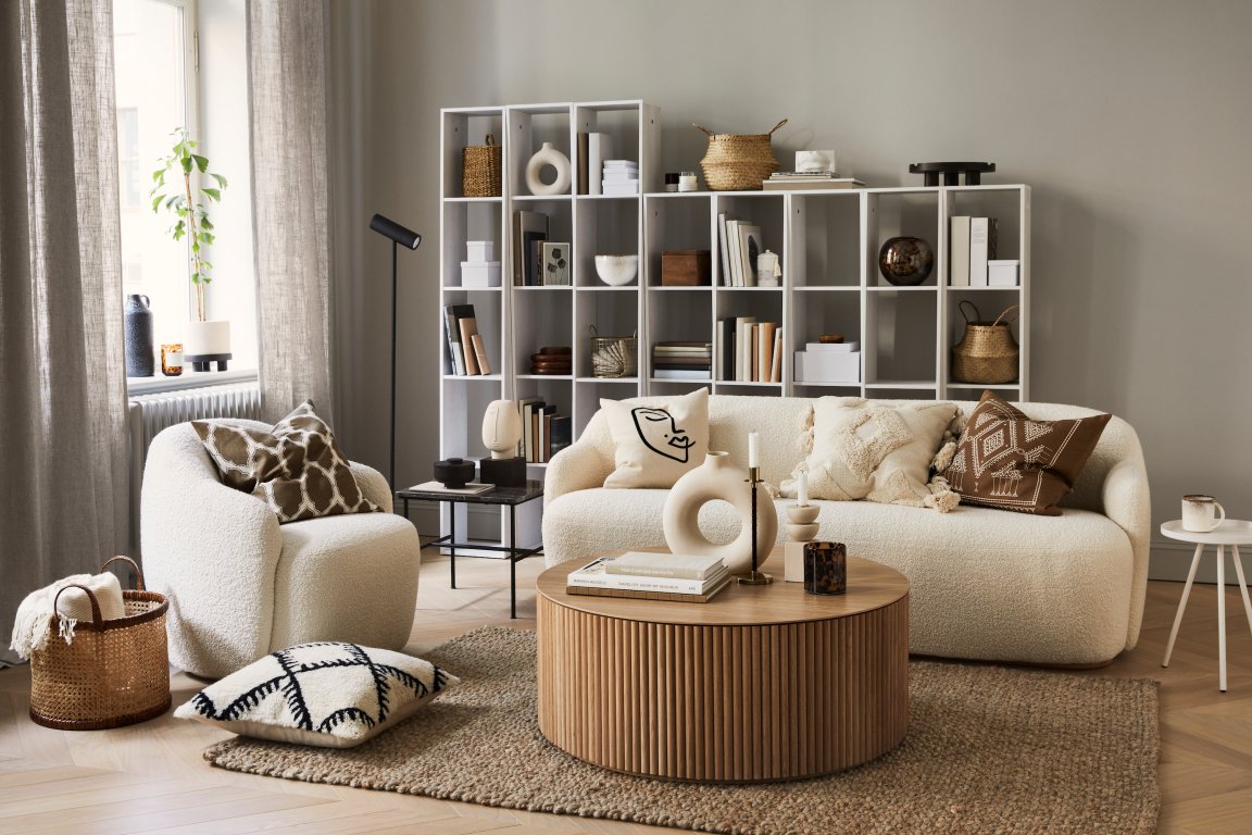 We don’t just mean wood; chocolate brown and beiges in various shades are everywhere. (We definitely called this color trend back in October.) H&M Home tapped Evalotta Sundling and Elin Klickén of Swedish brand Sundling Klickén, the stylists behind the editorial, to share their tips for styling the new pieces around the neutral tone, and they delivered.