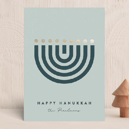 All of the details of this foil-printed Hanukkah card can be customized—color, paper type, and even the silhouette (with six shapes to choose from).