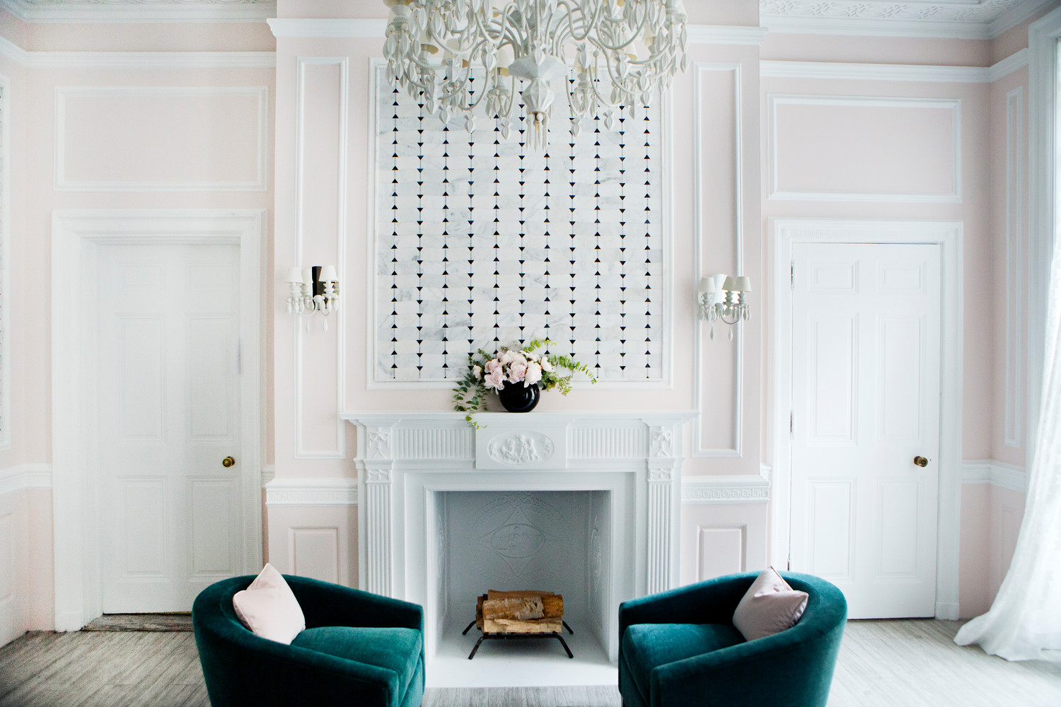 AKDO, tiles | Replacements Ltd, table and glassware | Duralee, fabrics | Benjamin Moore, paints | Lladro, chandeliers | THG, faucet | Franke, sink | Stitch NYC, chair and curtain fabrication | A.B.W Design Inc., millwork fabrication