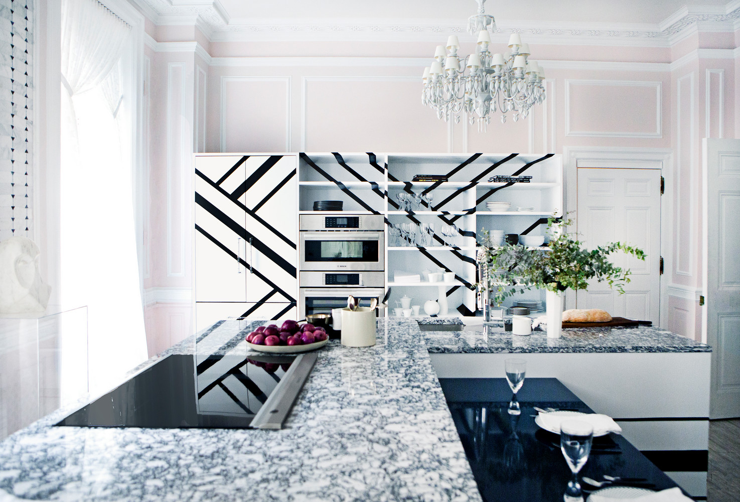 This year, the first-ever kitchen was implemented in the Holiday House, designed by Young Huh, principal and founder of Young Huh Interiors. The NYC-based designer is known for her classically eclectic style, accented by a bold and contemporary edge. Huh channeled the sleek-meets-modern brand aesthetics of the partners behind the kitchen project—Domino and Bosch—drawing inspiration from contemporary European interiors, with a graphic spin.