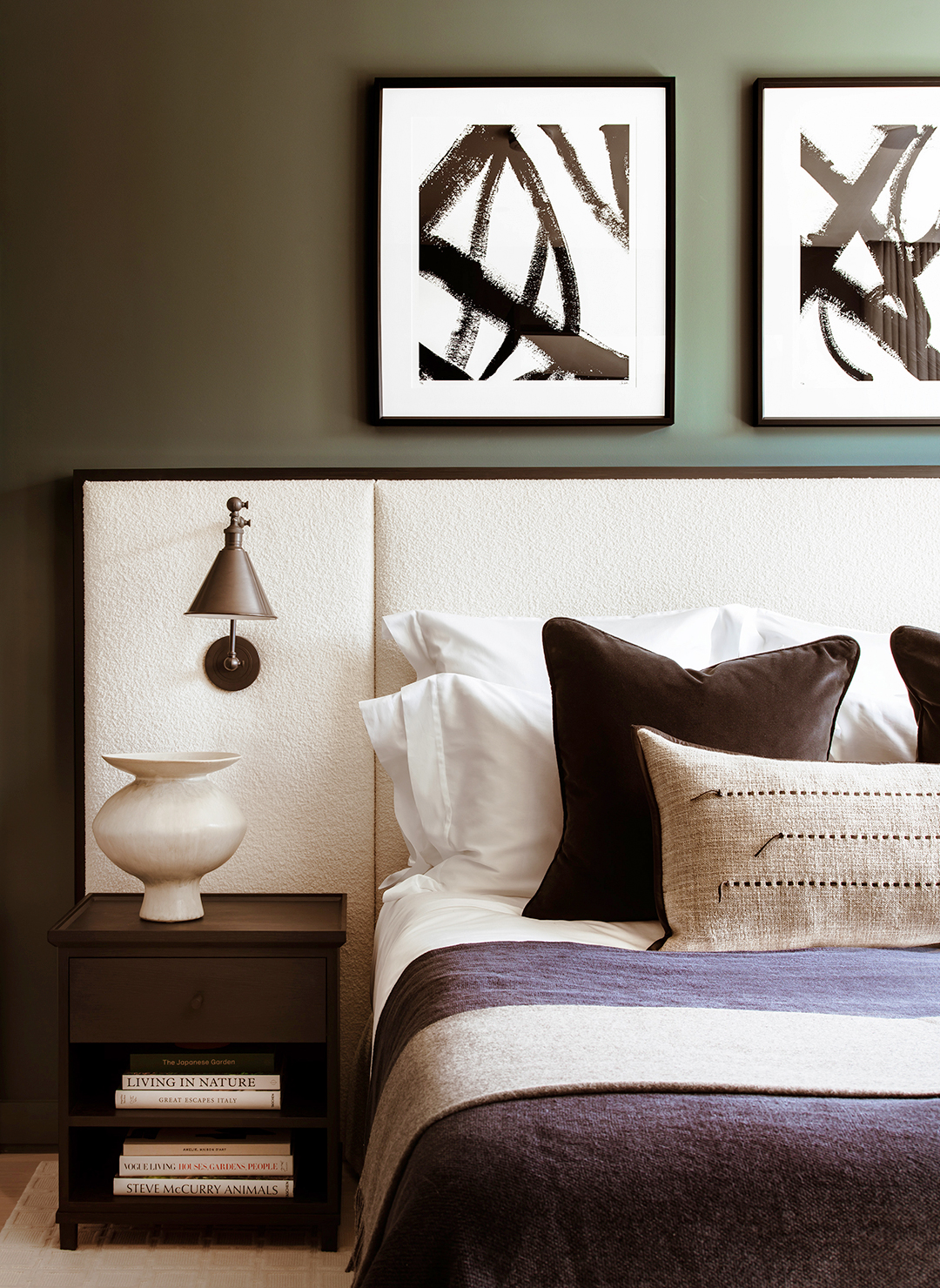 In addition to measuring the depth of the sofas, Albion Nord paid close attention to the height of the beds. Clarke’s rule is that the frame should sit off the ground at least 2 feet. Then they like to layer on the pillows, ensuring that there are four rectangular sleeping pillows, two square Euro ones, and at least one decorative option for any queen- or king-size mattress. A goose-down duvet gives the rest of the arrangement that coveted cloudlike look. “It reminds me of that scene in Along Came Polly where Ben Stiller’s character is like: ‘You’ve got too many cushions on your bed,’” she says with a laugh. “But it makes a difference.”