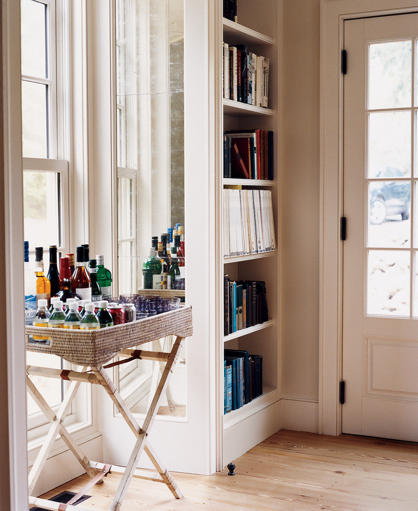 And then there’s wall space. Hanging bar-appropriate shelving, or repurposing existing shelves, will ensure guests have easy access to their drink of choice all night.