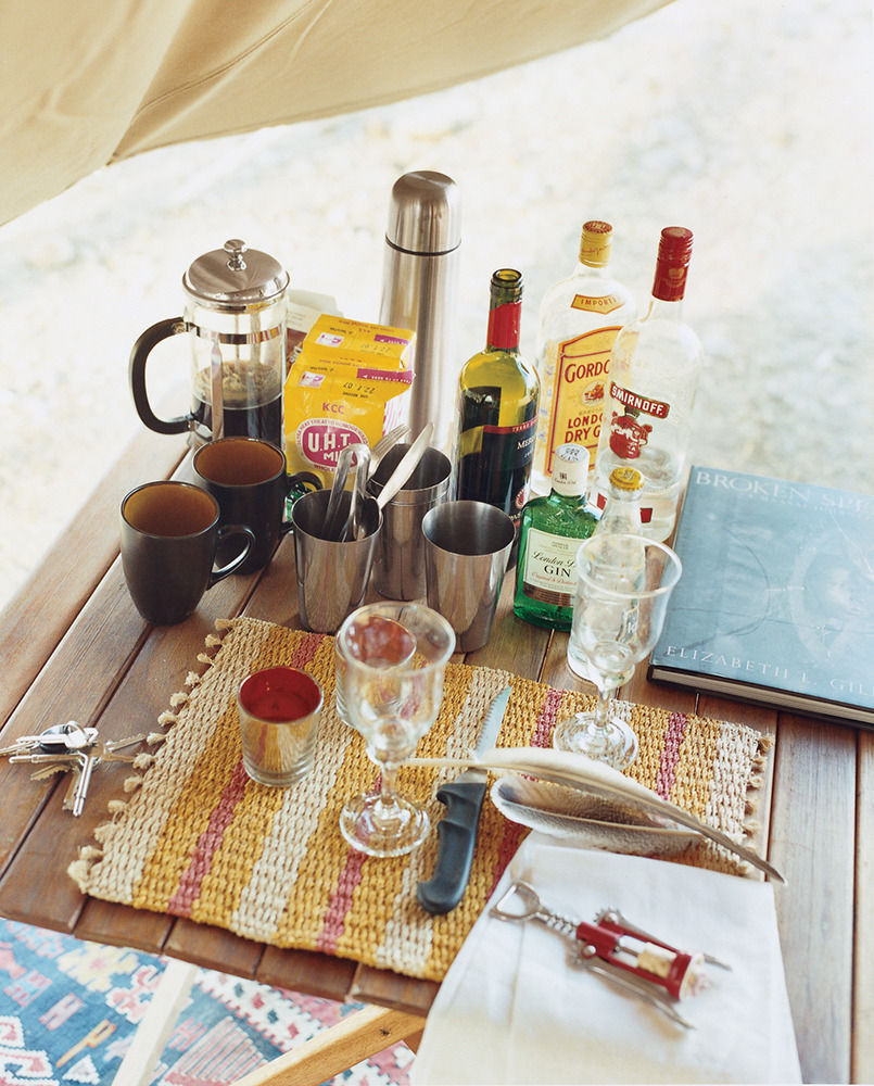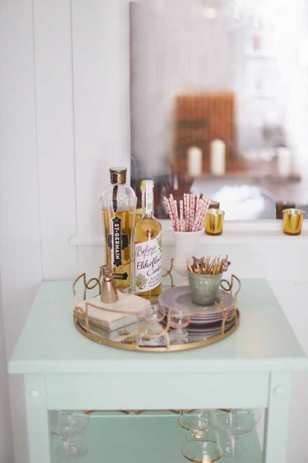 All you need is a surface as big as a tray, and hosting essentials can go anywhere. This mobile bar option allows you to move the focal point of the party to where people are gathering.