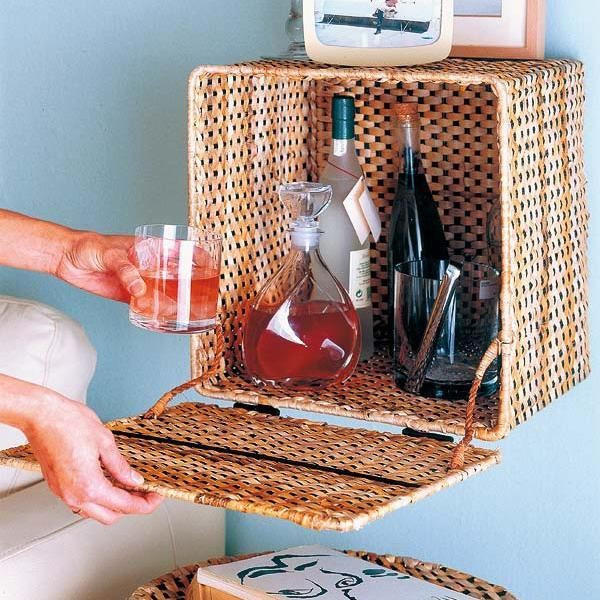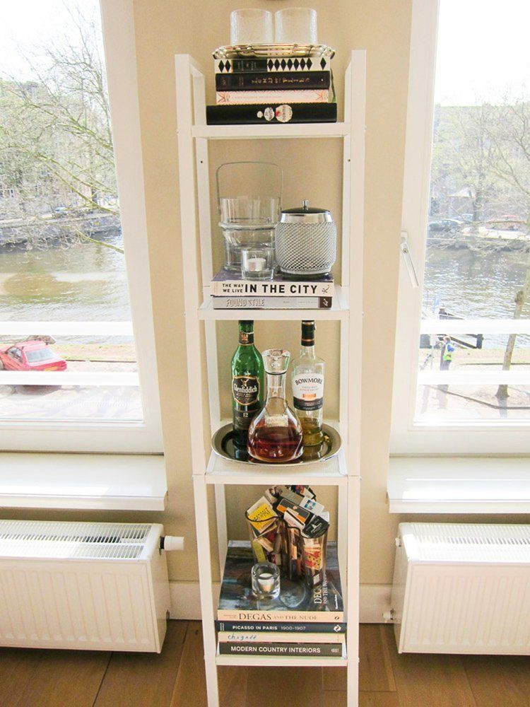 This option makes good use of vertical space, and divides bar essentials into compartments. While a luxurious, styled home bar might be more visually appealing, this one is full of function, without taking up too much floor space better saved for mingling.