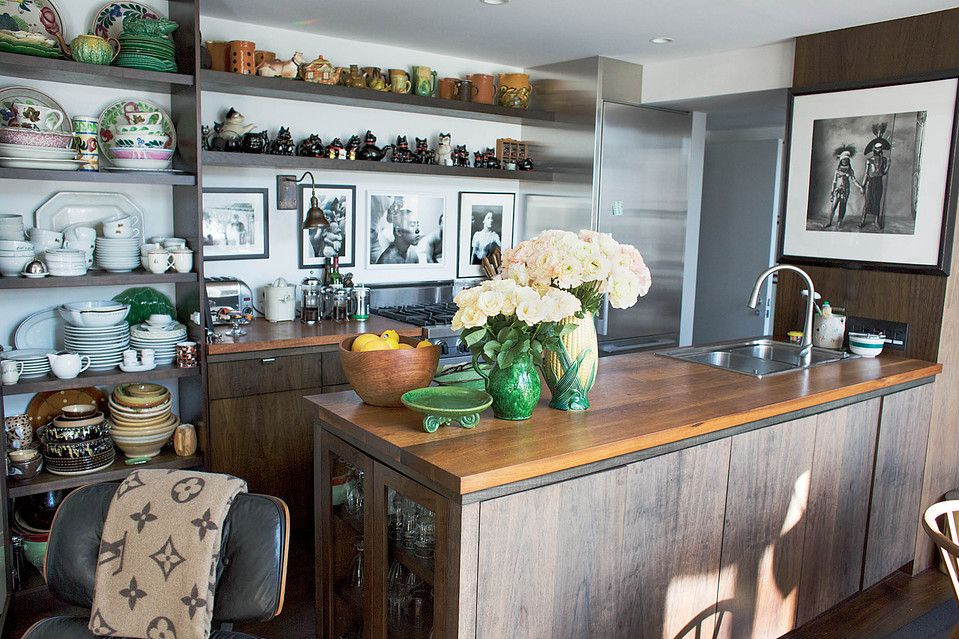 Just as there are removable tiles for your floors, there are sticky, removable tiles for your kitchen. Another simple option is adding removable contact paper that you can wipe clean or taking a page from Grace Coddington’s book and adding framed pictures.