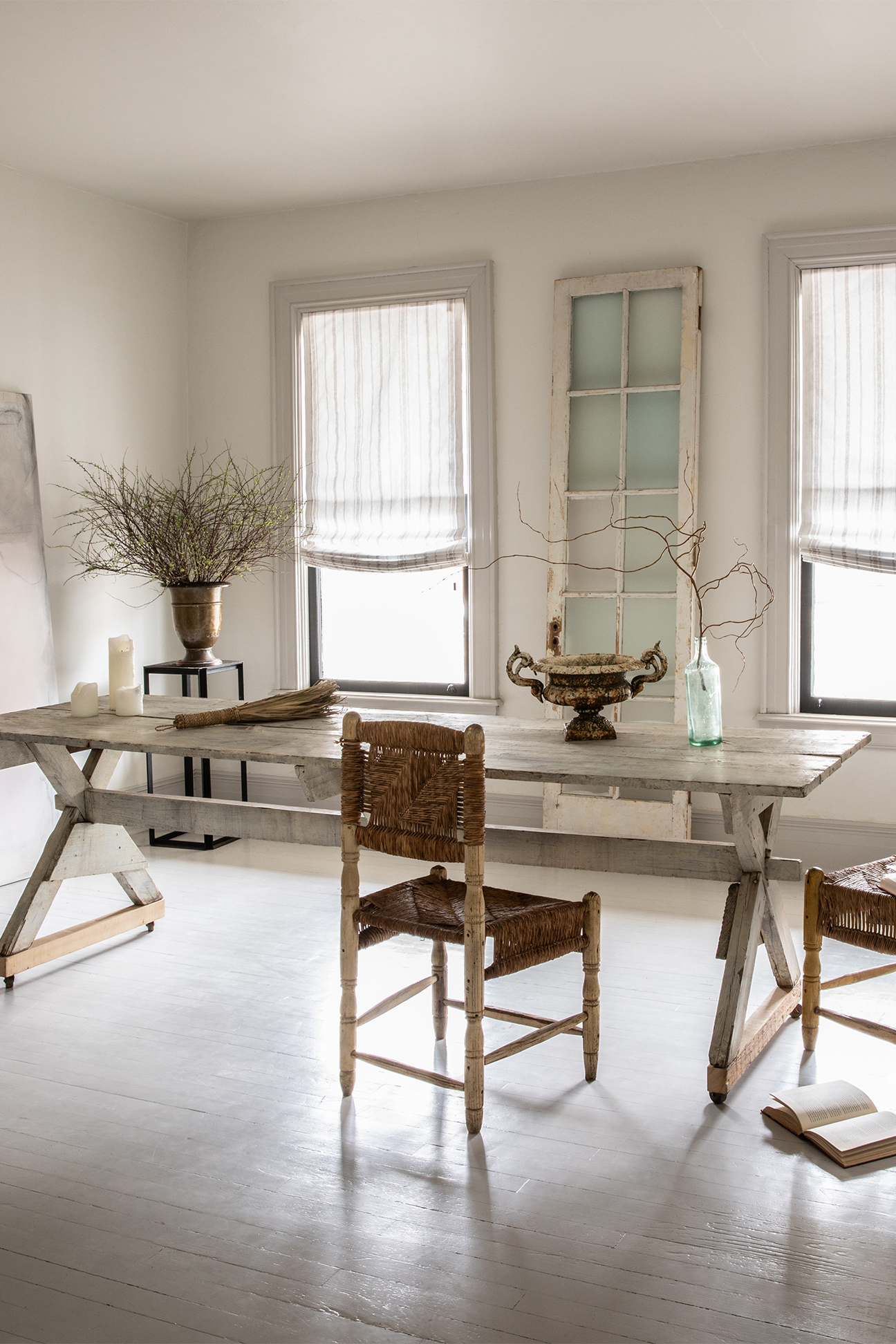 D’Argenzio let the house itself—and the surrounding setting—guide him. Given it’s a turn-of-the-century build in upstate New York, a place full of antiques and history, he went for an industrial craftsman vibe. If it had been a Victorian residence, however, he would’ve been more adventurous with color and ornate details; if it were a 1960s A-frame, it would’ve been all about clean lines and mid-century design.