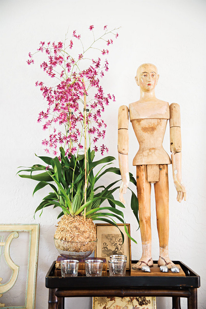 For Olga Granda-Scott, buying and selling antiques has always been a family affair. Having learned the trade from her father—the esteemed Miami dealer Ignacio Granda, of Alhambra Antiques—Granda-Scott (along with her husband, Doug Scott) founded The HighBoy , an online antiques marketplace, in 2013. So it isn’t surprising that when the couple purchased a four-bedroom midcentury residence in 2011, Granda-Scott was determined to incorporate a lifetime’s worth of historic furnishings into her new interiors. “Even though we now have a contemporary house, I can’t live without the pieces I love,” she says. “And, besides, the challenge of juxtaposing modern architecture and traditional furnishings made decorating fun for me.”