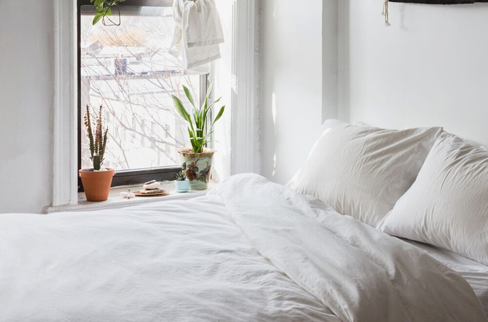 Rawls-Meehan suggests tossing the blanket off of your bed and instead employing your top sheet as a light, cool cover. “Avoid hot materials like flannel or satin,” he says. “Instead, opt for breathable cotton or heat-wicking linen.”
