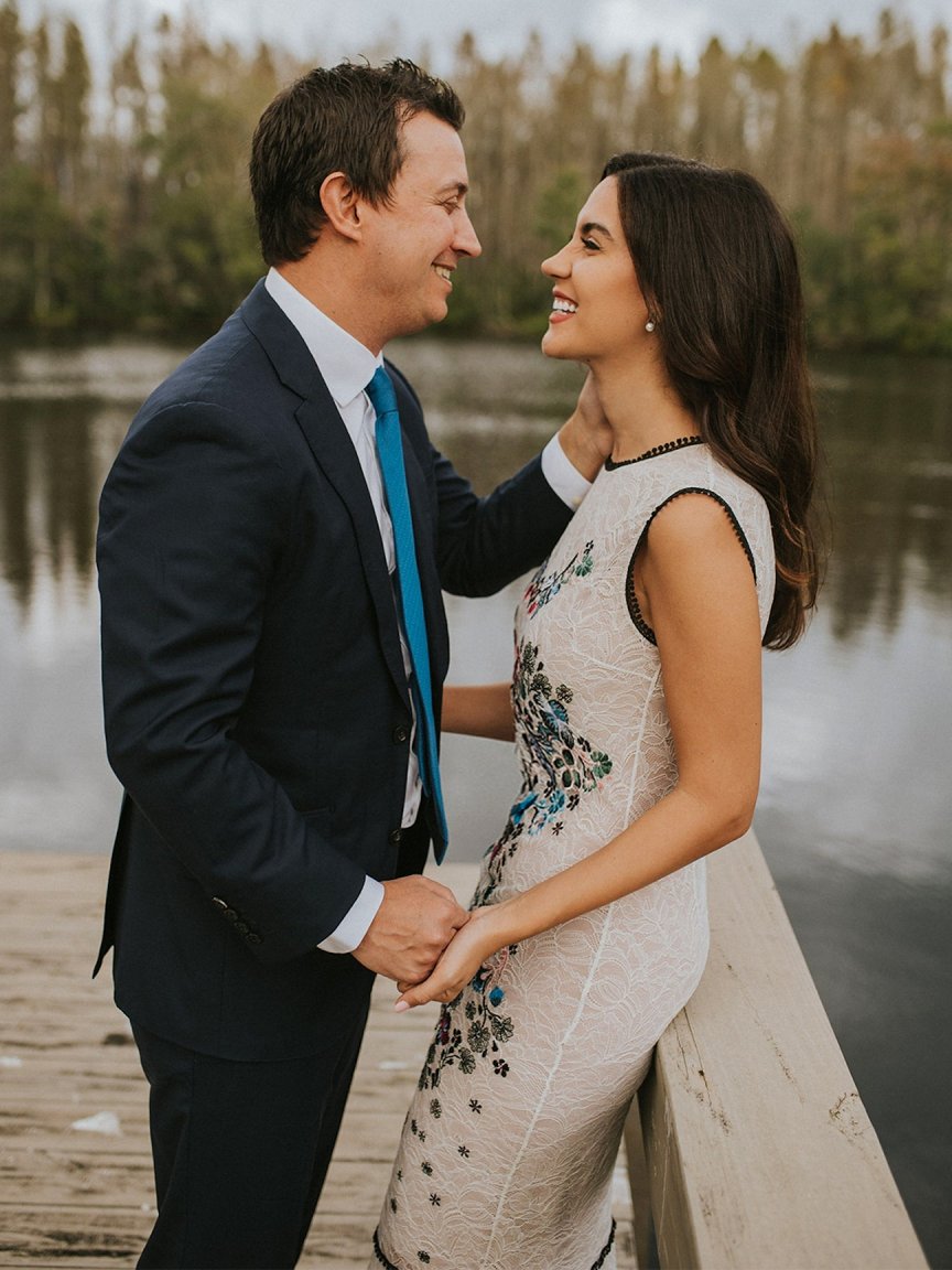 Deciding to spare costs on an elaborate multi-day event in favor of saving up for upcoming trips, they married at the groom’s parents’ house in Lutz, Florida. The venue was free, tallying the total cost (including travel, photography, food, and alcohol) to less than $3,000. What’s more, they were able to plan the entire event in (gasp) under two weeks.