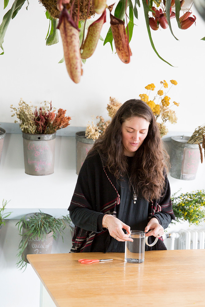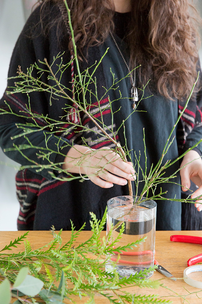 Pro Tip: When working with the more thick-stemmed branches, cut the stem diagonally to allow it to retain more water.