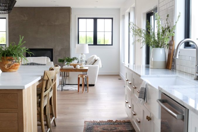While making over her master bathroom and closet for the One Room Challenge, Carmona decided to tackle the popcorn ceilings solo, despite a professional telling her it would be practically impossible to remove on her own. Getting rid of all the little bumps was a “shockingly fast” process, admits Carmona (she did both spaces in the span of a morning). The exhausting part is applying the skim coat. “I’m not saying it’s a fun job—it’s not,” she says. “But to me, it was worth it. I have some amazing light fixtures, and you can’t put a chandelier up against popcorn ceilings. You just can’t.” Do your decor justice and follow her five steps for achieving an even surface.