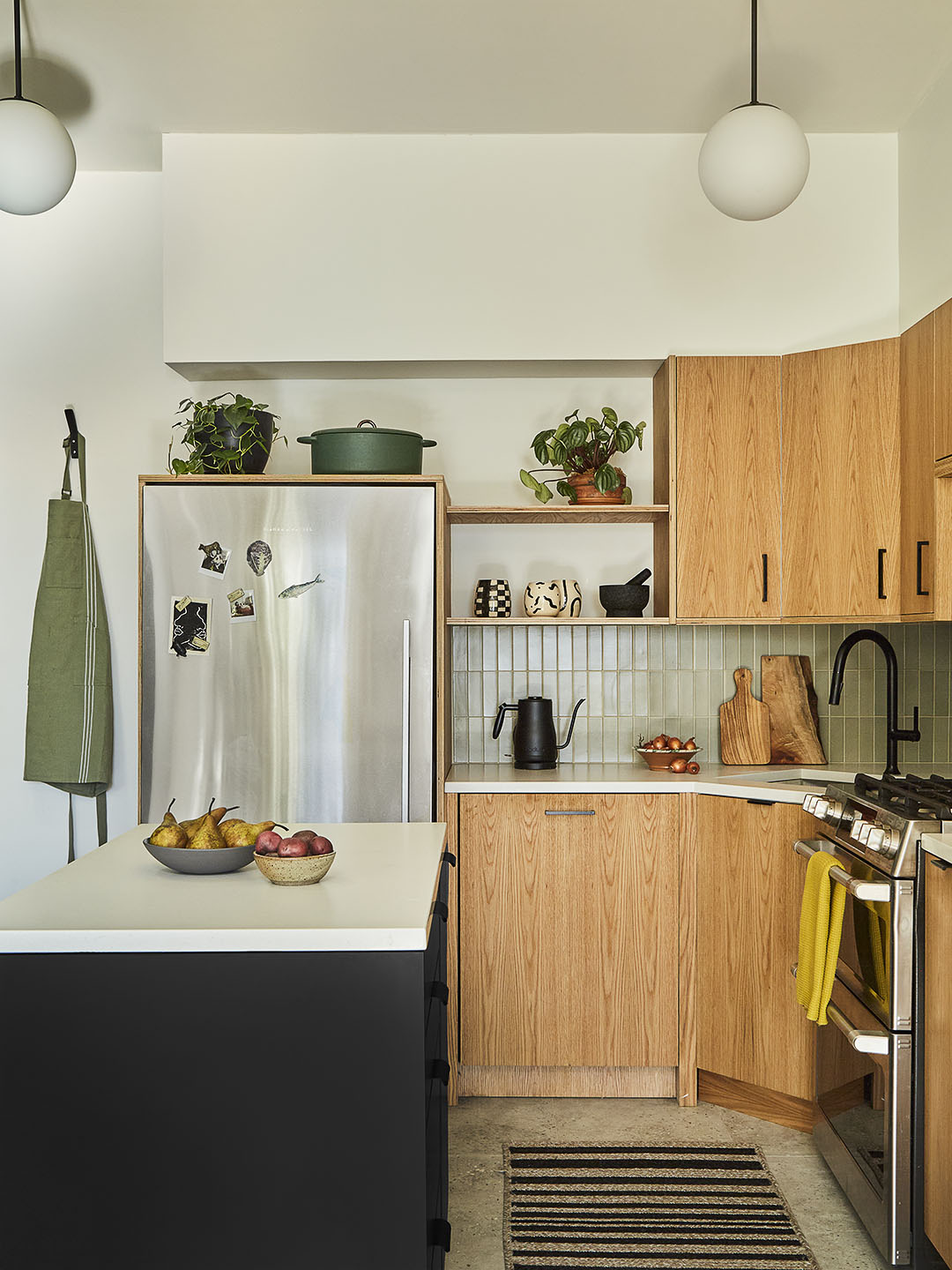 Thelma Meyer of Mrs. Meyer’s Clean Day recommends simple dish soap and warm water for most surfaces, but you can DIY your own formula for countertops that stain easily like linoleum. Her go-to: baking soda and warm water.
