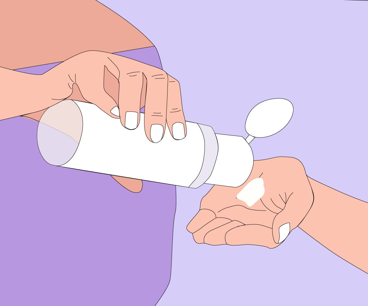 After you wet your hair, put a tiny amount of shampoo onto your hands. “You put it onto your scalp only, and add a small amount of water,” he explains. “People put too much shampoo all the time, and it’s difficult to rinse.”