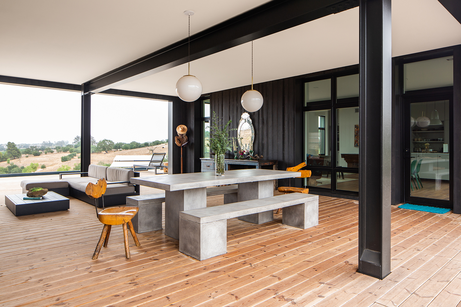 The landscaping, a collaboration with Terremoto, helped connect the two dwellings with a gravel road and what Melissa calls an “energy vortex” made from five boulders placed in a circle that help visitors (and the owners) reflect on the land, which the couple filled with California-native, drought-tolerant plants and, recently, nearly 50 citrus trees.