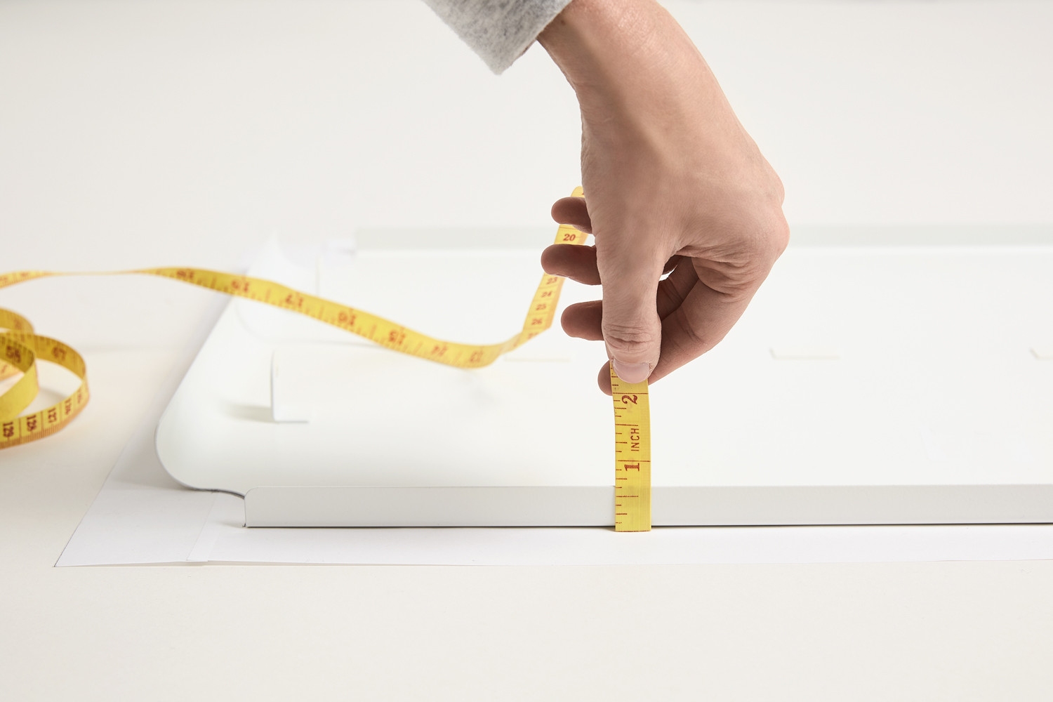 3. Create your template. Using a flexible measuring tape, carefully measure the exact dimensions of the area being covered. Replicate those dimensions on tracing paper, using a pencil and ruler to create an exact replica of the area being covered.*