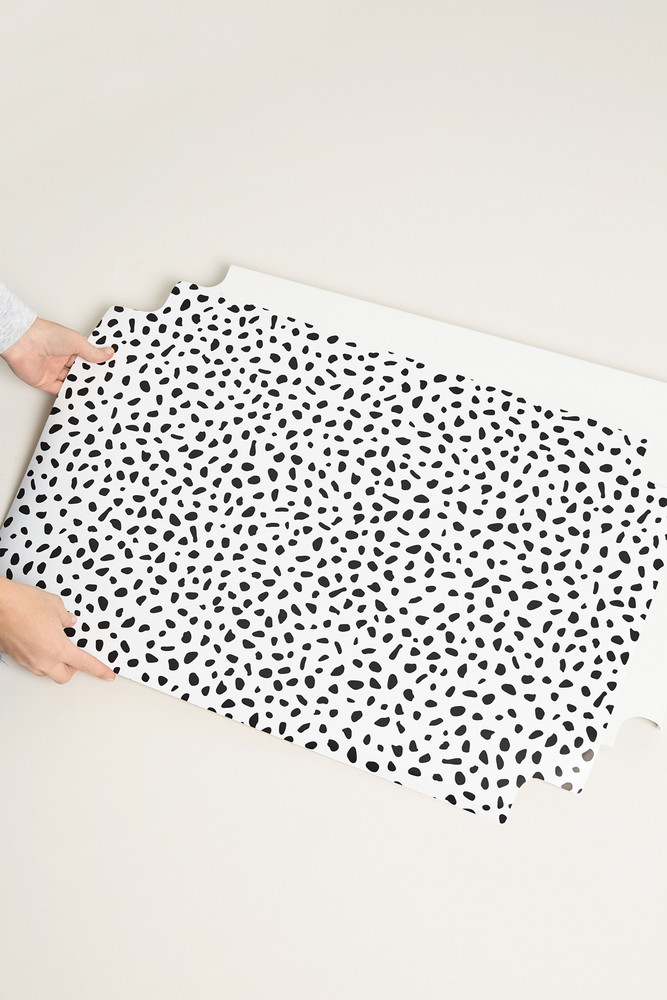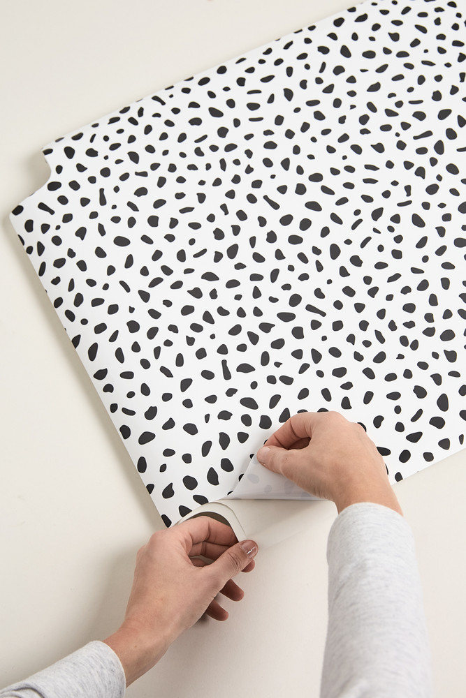 - Removable wallpaper, Target has a great variety online. We used Devine Color Speckled Dot Peel & Stick in black. A roll is several yards and plenty for a large project (or multiple)