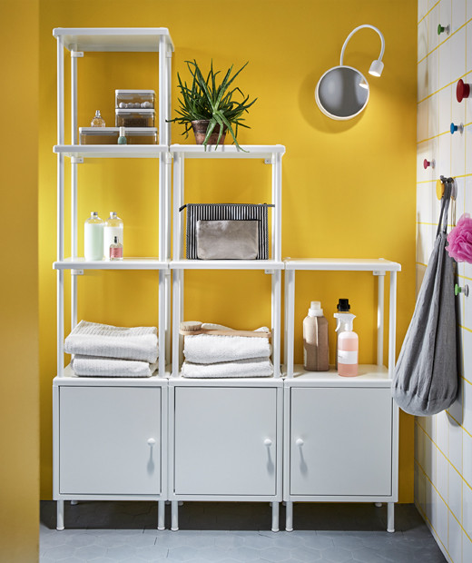 When it comes to tiny bathrooms, it’s all about making the most of the limited square footage you have with as few pieces as possible. Tricky, huh? Here’s where a versatile storage solution comes in—much like this compartmentalized piece spotted on IKEA Italy, which can house a slew of items from towels and linens to beauty and bath time essentials. Bonus points if you can squeeze in a potted plant or two in there.