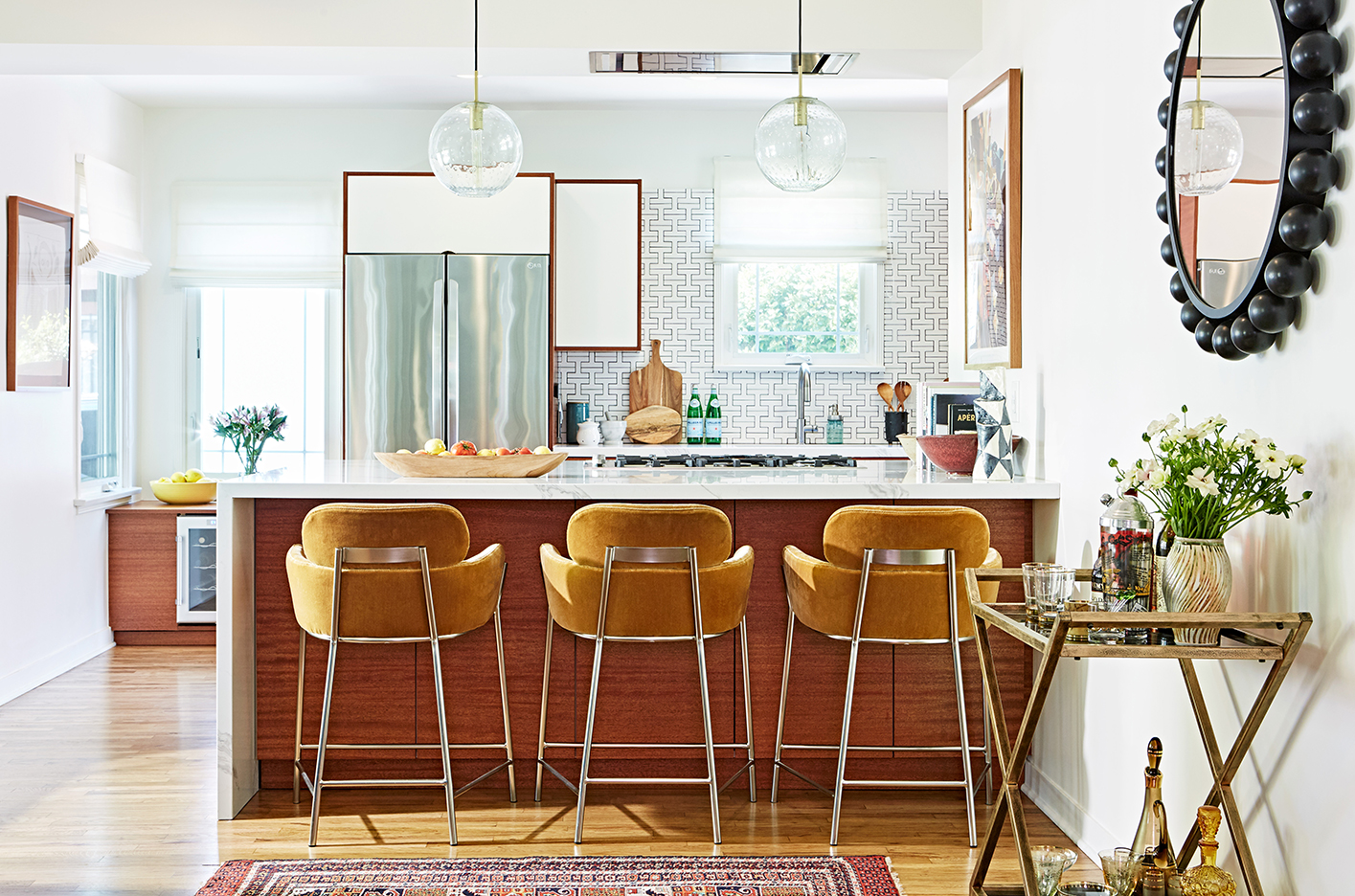 For one kitchen remodel in North Hollywood, Vigna extended a client’s long galley kitchen into their dining area. Apt to entertain, they wanted a breakfast nook, but putting a kitchen table in the newly opened space would be redundant. Vigna cleverly turned to IKEA’s refrigerator cabinet to create a bench where her client’s guests could hang while they cooked and carried on conversations.