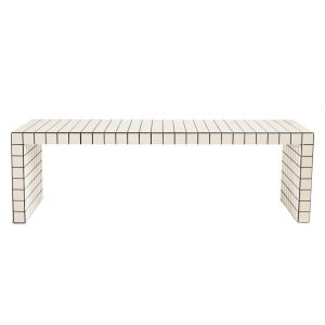 Her own designs, however, are the focal point. The coffee table, where she contemplates what pieces to bring into her space next (“I like to change my furniture up a lot,” she says. “I’ve already purchased a new sofa and dining chairs”), is the centerpiece of the living room, while the long console table adds texture to her bedroom. “They’re very simple designs, but they’re unique,” she notes. “And I love how practical they are. Tiles weren’t a trend when we started back in 2016, and it’s so nice to see how many people love the look as much as we do. It’s bound to become a design classic.”