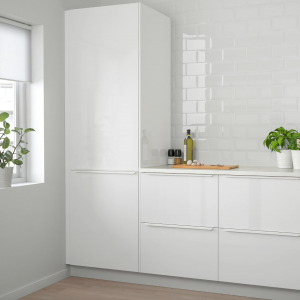 Though Thorgaard’s style is minimal, her space is littered with splashes of pastels that show off her personality. While most of the apartment is white, she opted for two statement walls: mint green in the living area and beige in the bedroom, both of which she painted herself. To elevate the IKEA cabinets and closets, she played with material, changing out the handles for polished brass knobs from Johannes Fog. In the bedroom, she added classic vintage-inspired covers with diamond-patterned mesh-metal fronts to the radiators, turning them from eyesores to decorative shelves.