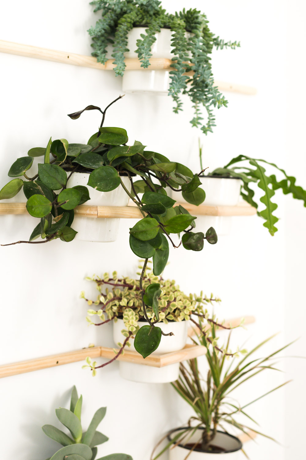 Another trick for your littlest guys: Float them in dowel planters. Gubler’s second “living wall” display calls for some woodworking skills, but never fear: The pro makes the process of cutting the pieces and pre-drilling the screw holes look easy. Psst: The folks at Home Depot (or wherever you go when you’re craving a weekend project) can also lend a hand with the trimming.