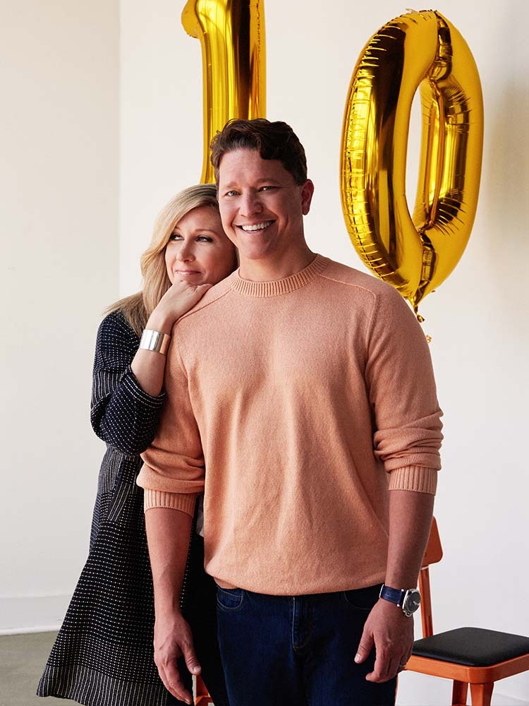 Believe or not, trend-forward design brand Industry West was founded a decade ago. Anne and Jordan England, the husband-and-wife founders, had just moved to South Carolina and were struggling to find furniture that fit their mid-century design style. That’s when Jordan looked overseas and found a factory in Asia that was crafting the modern-industrial furnishings he had in mind. Since then, the couple has opened a brick-and-mortar showroom at 14 Crosby Street in downtown Manhattan (they hope to open one on the West Coast soon) and designed spaces for Michelin Star restaurants and NFL teams. As the company turns 10 years old, Jordan and Anne reflect on how they started, what they’ve learned, and where they’re headed next.