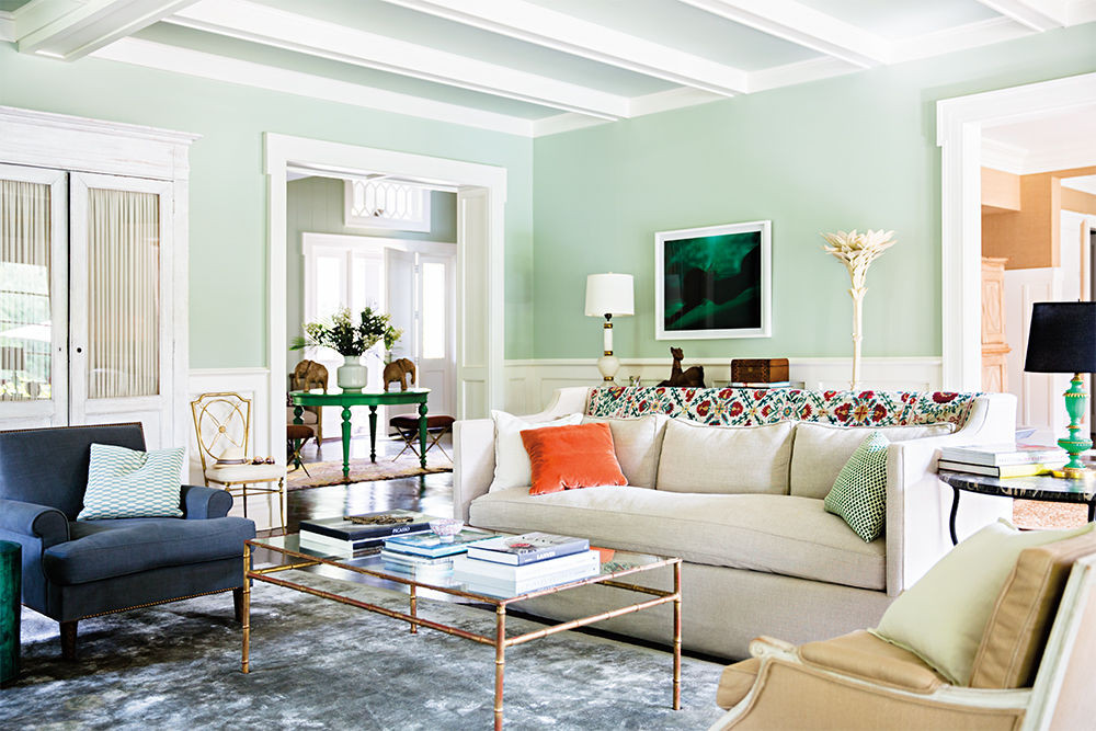 “Comfort is very important to me, so one of my biggest design challenges lay in making the house feel relaxed,” says Lee. With the help of pal Nate Berkus, she utterly transformed the newly constructed residence, and the pair got especially creative when it came to reimagining her existing furnishings in their new context. Berkus also steered Lee toward a soft, feminine palette, including the living room’s soothing mint green. “I’d been going crazy with all the color choices, and, within five minutes, Nate helped me make a decision,” says Lee. “He knows my style so well and was the most tremendous help.”
