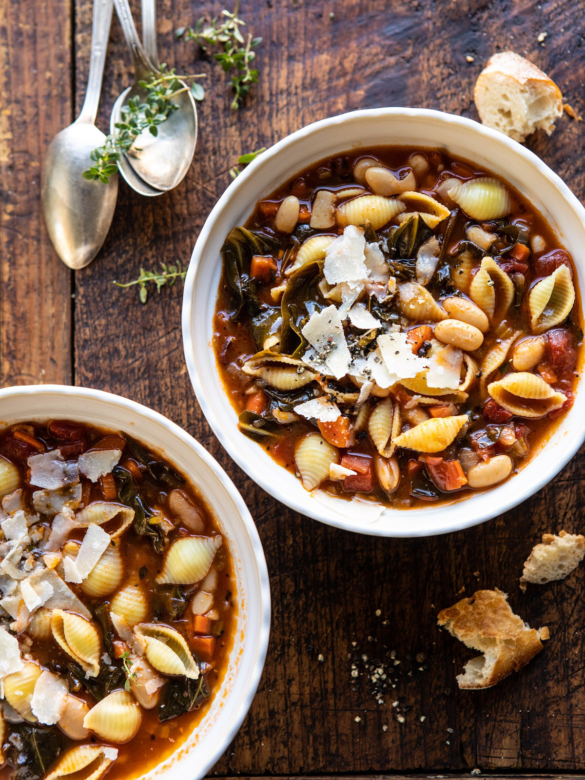 Author Tieghan Gerard certainly had comfort food on the brain when concocting this mouthwatering pasta e fagioli recipe. Packed with thick-cut bacon, pasta, and such winter vegetables as carrots, kale, and onion, this classic Italian soup is simple, semi-healthy, and ready to eat in 40 minutes. Add the Parmesan rind directly to the pot for added flavor when cooking, and serve with crusty bread and grated Parmesan sprinkled over the top.