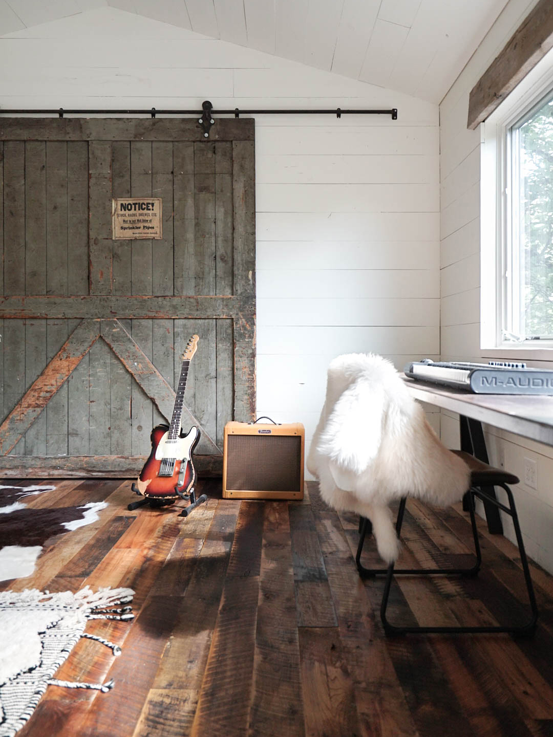 In an effort to delineate the office from the playroom, St. Paul, Minnesota–based designer Kassina Folstadt divided things up with an untouched barn door. The wood is rough around the edges (peep the original notice sign), but that’s what ultimately gives it character.