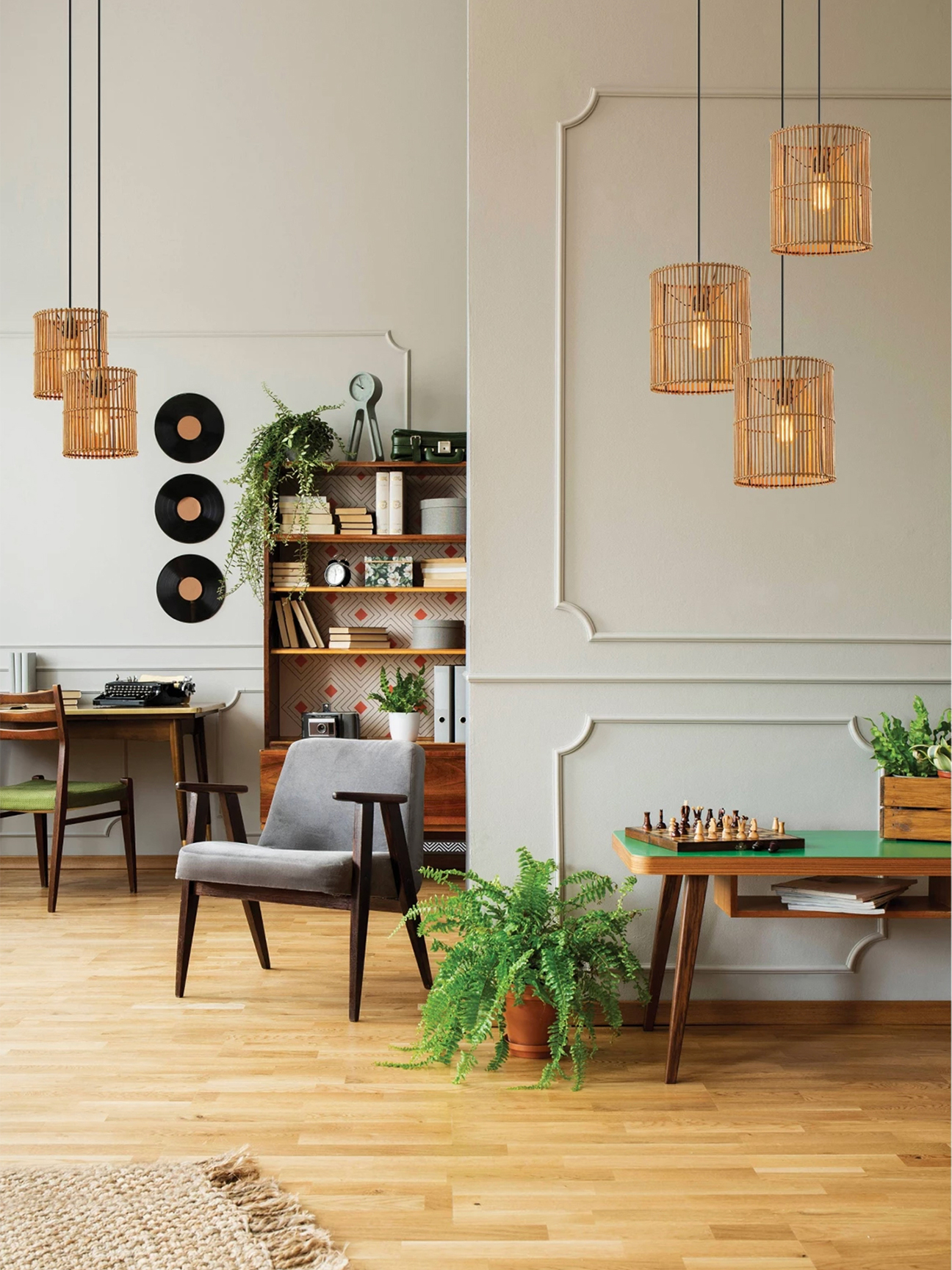Rattan isn’t going anywhere anytime soon, but if you’re looking for a fresh twist on the material, Dee Murphy recommends this sleek light fixture. “It feels more modern than trendy,” she explains. Murphy would finish off a built-in kitchen banquet or breakfast nook with a contemporary marble table and patterned upholstered seat cushions for the perfect medley of contrasting textures.